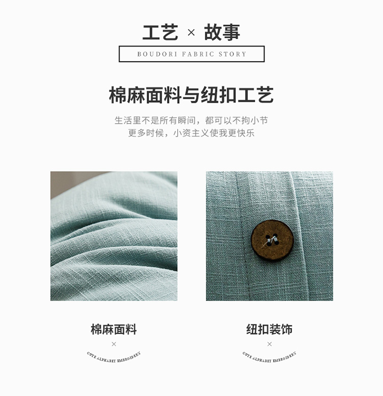 (总)美茉家居日韩简约棉麻素色抱枕椰扣装饰纯色靠垫含芯可拆洗,湖蓝,麻本,肉粉,苔绿,雾蓝