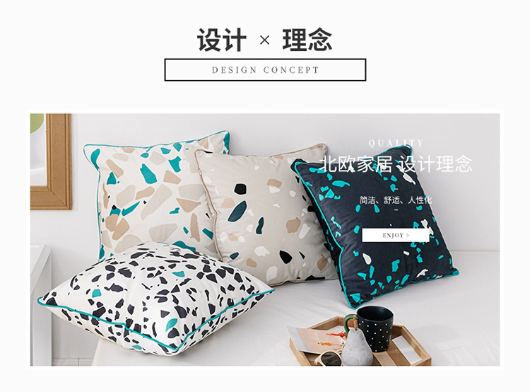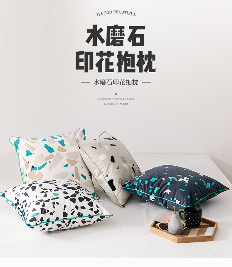 商品名称:美茉家居北欧水磨石印花抱枕荷兰绒数码靠垫 水磨石-黑