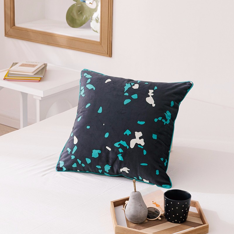 美茉家居北欧水磨石印花抱枕荷兰绒数码靠垫 水磨石-黑