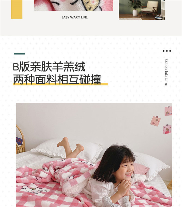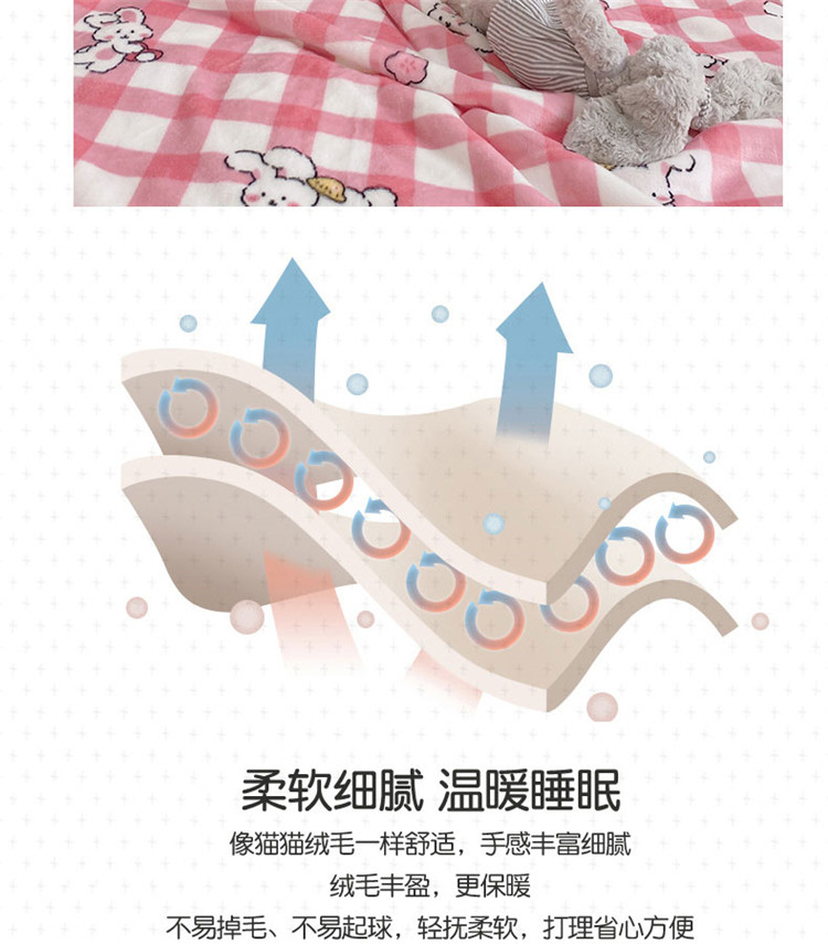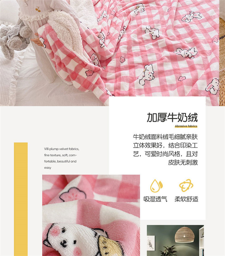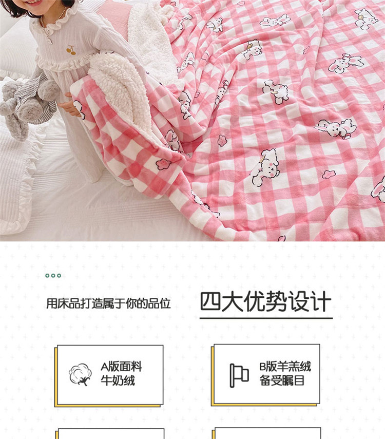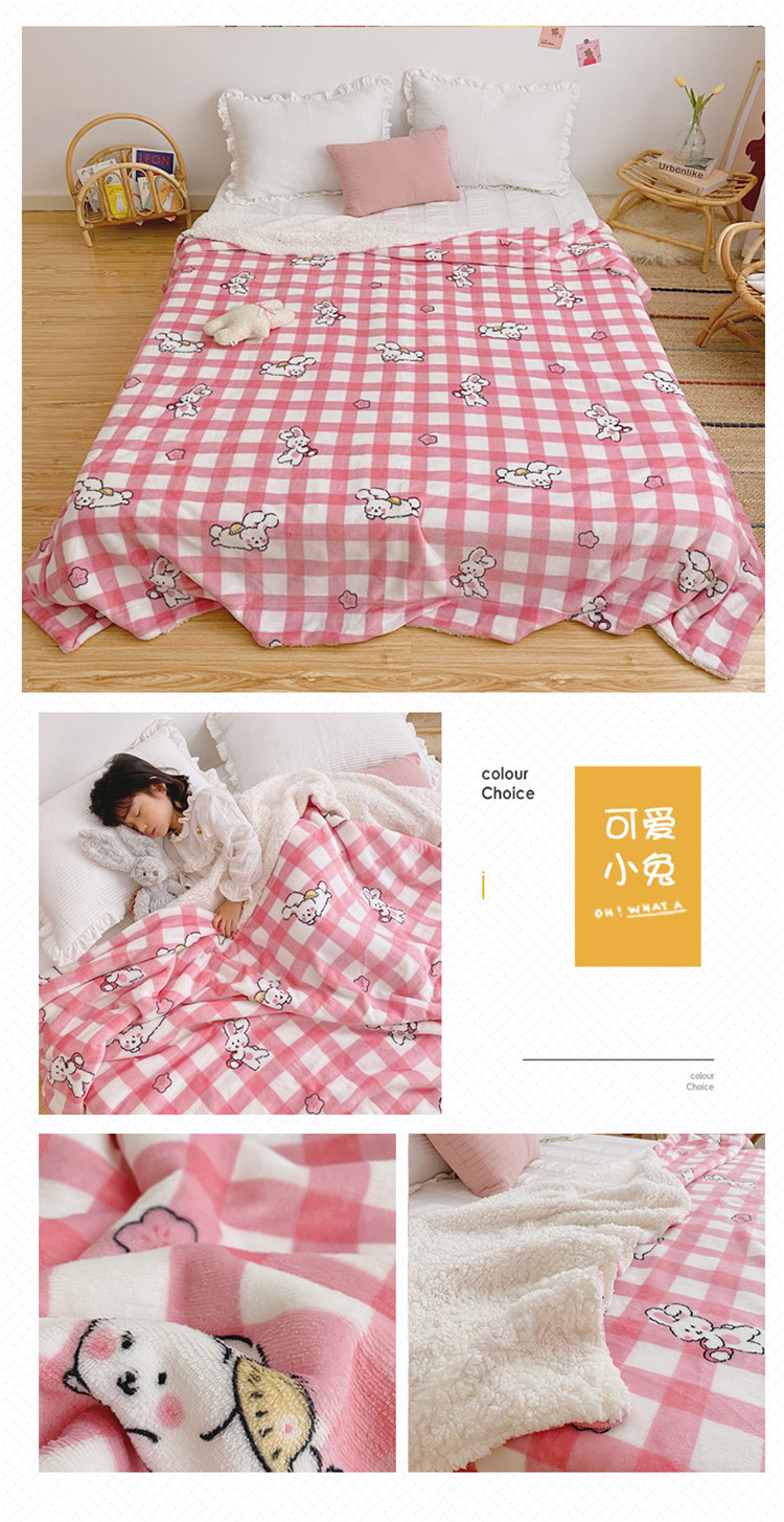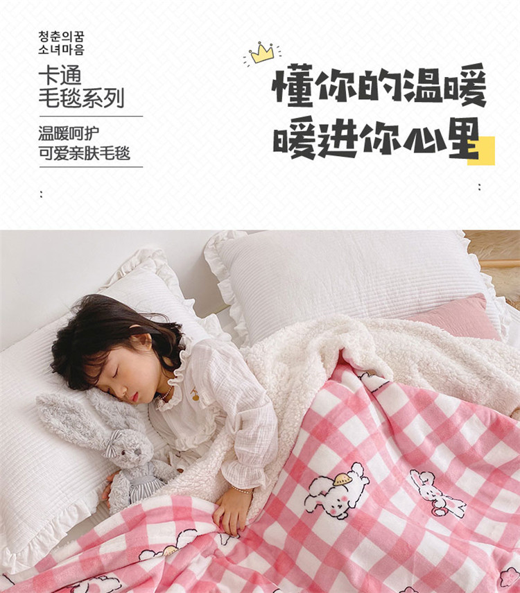 川悦生活2020新款羊羔绒毯子卡通亲肤牛奶绒毛毯可爱小兔