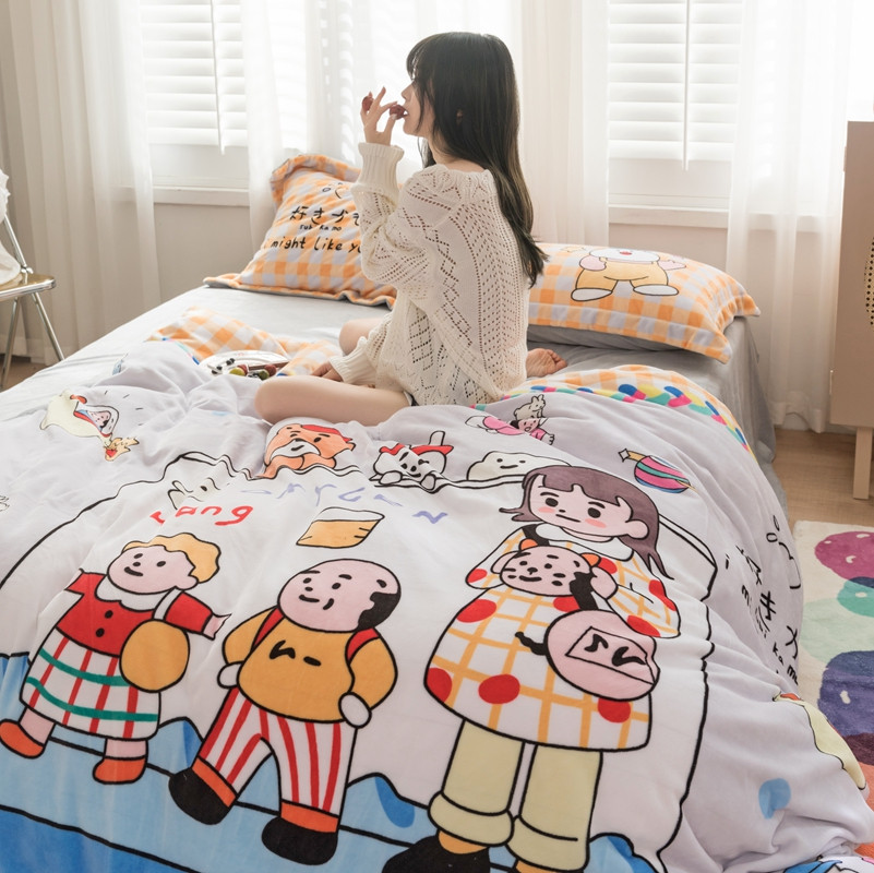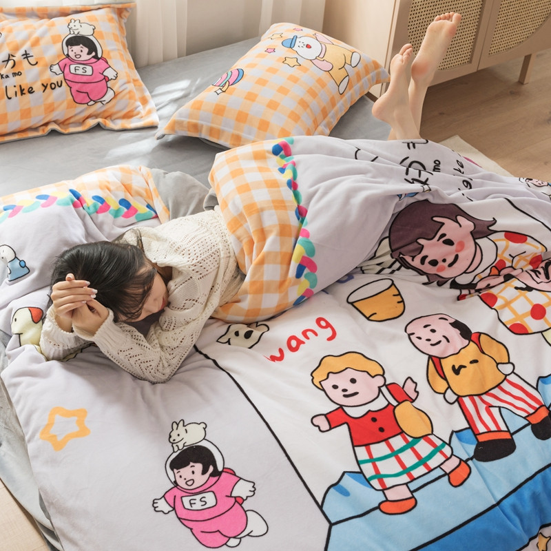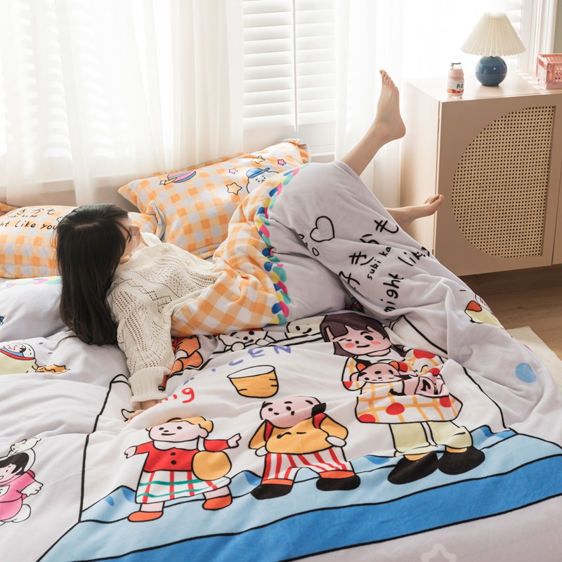 柚子 2020新款牛奶绒印花大版四件套 环游世界