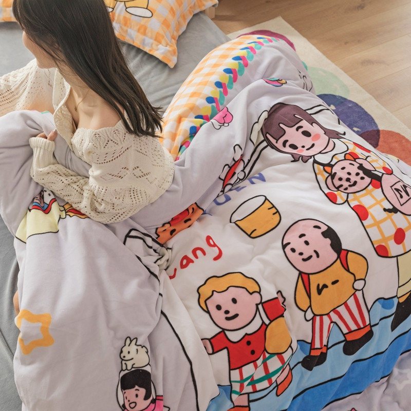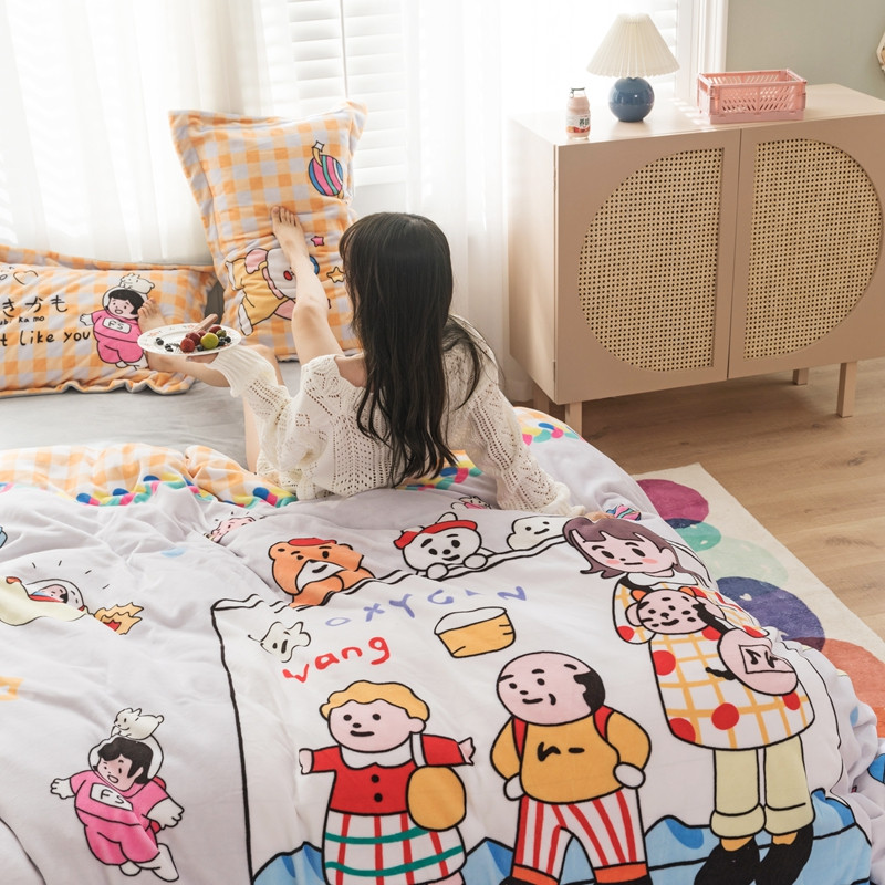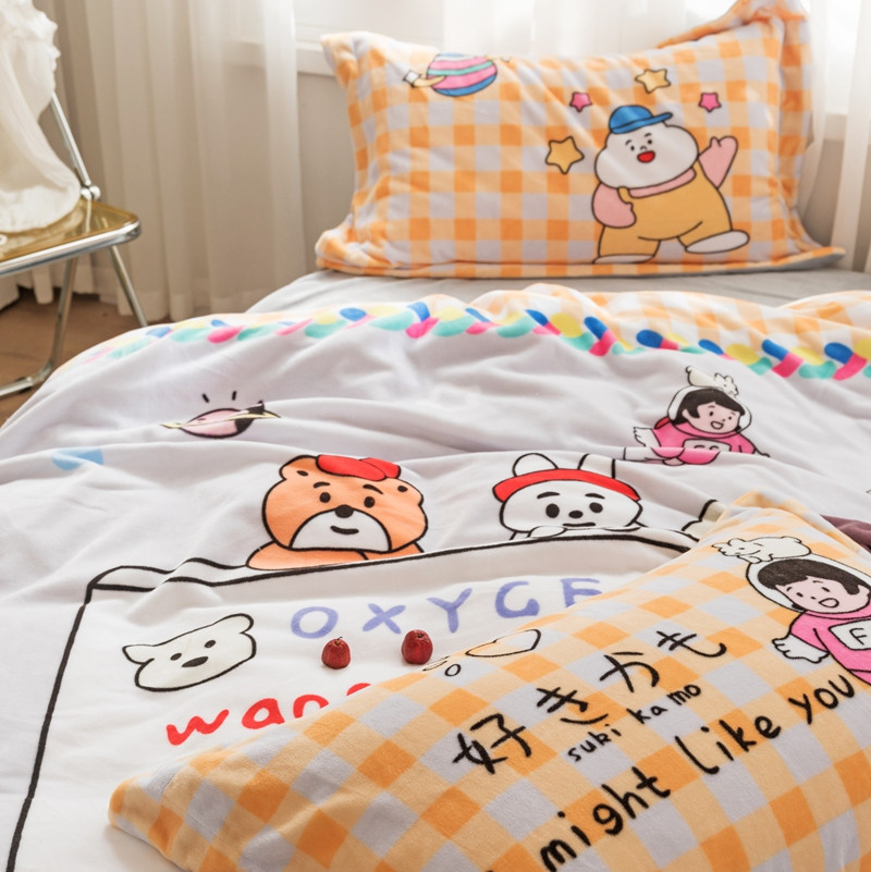 (总)柚子YOUTH 2025新款双面泰迪绒毛巾绣四件套,甜甜圈,快乐企鹅,森林聚会,甜酷KT,小茄子,雪人王国