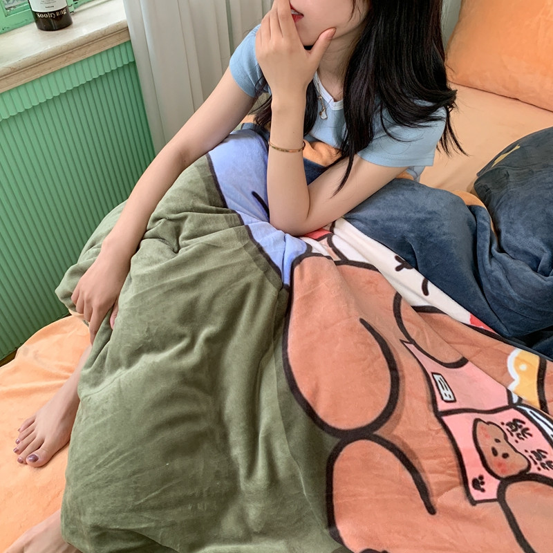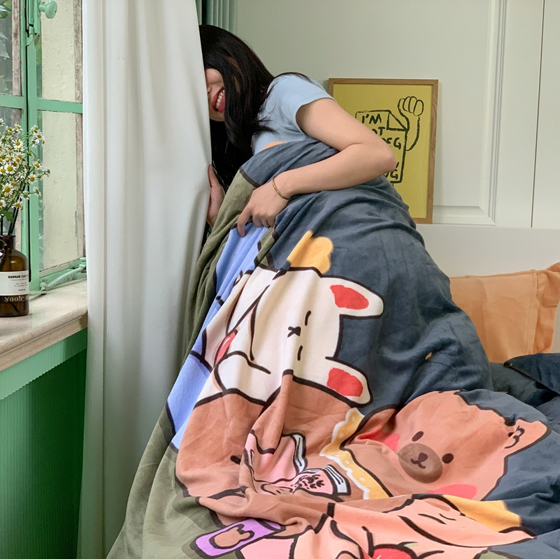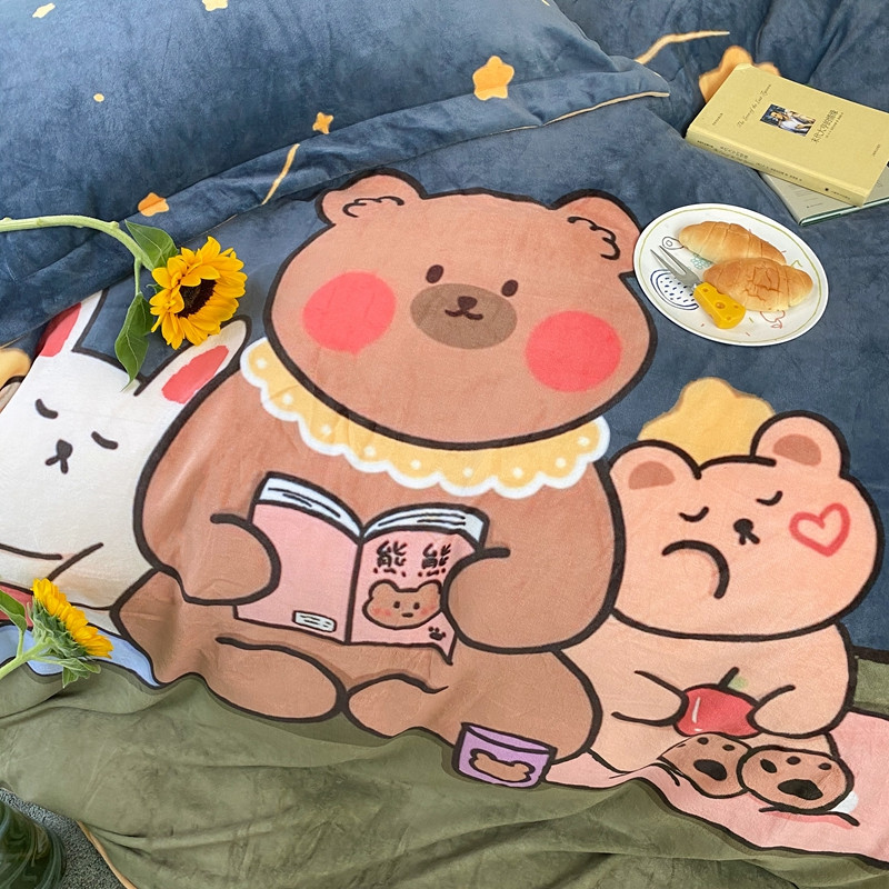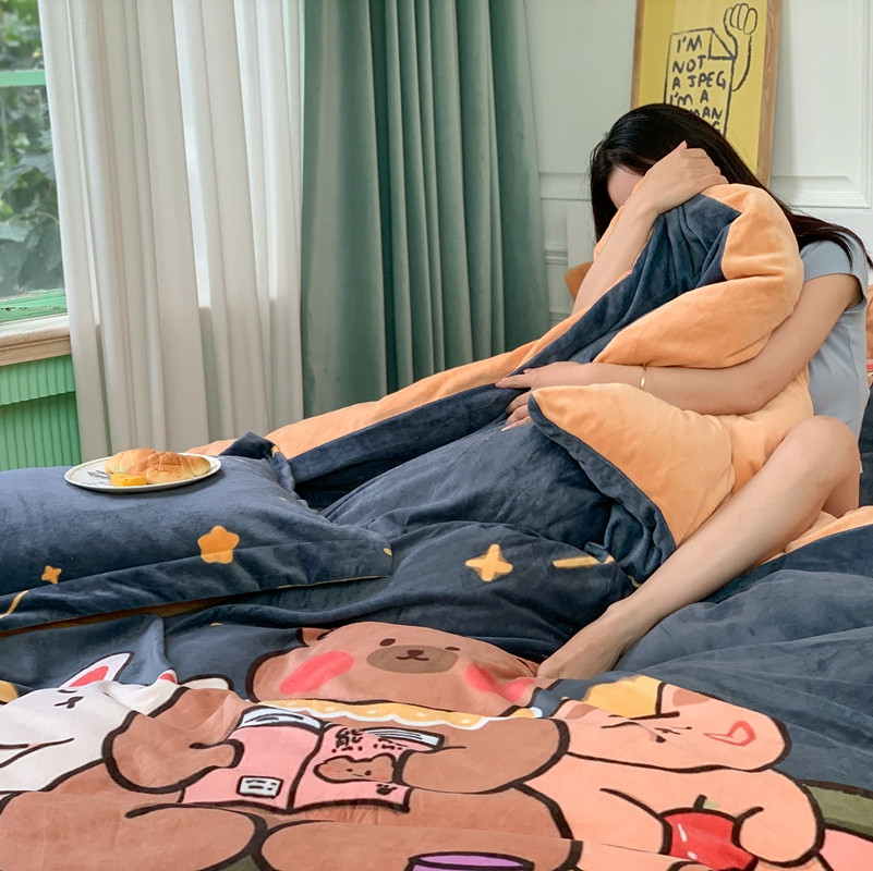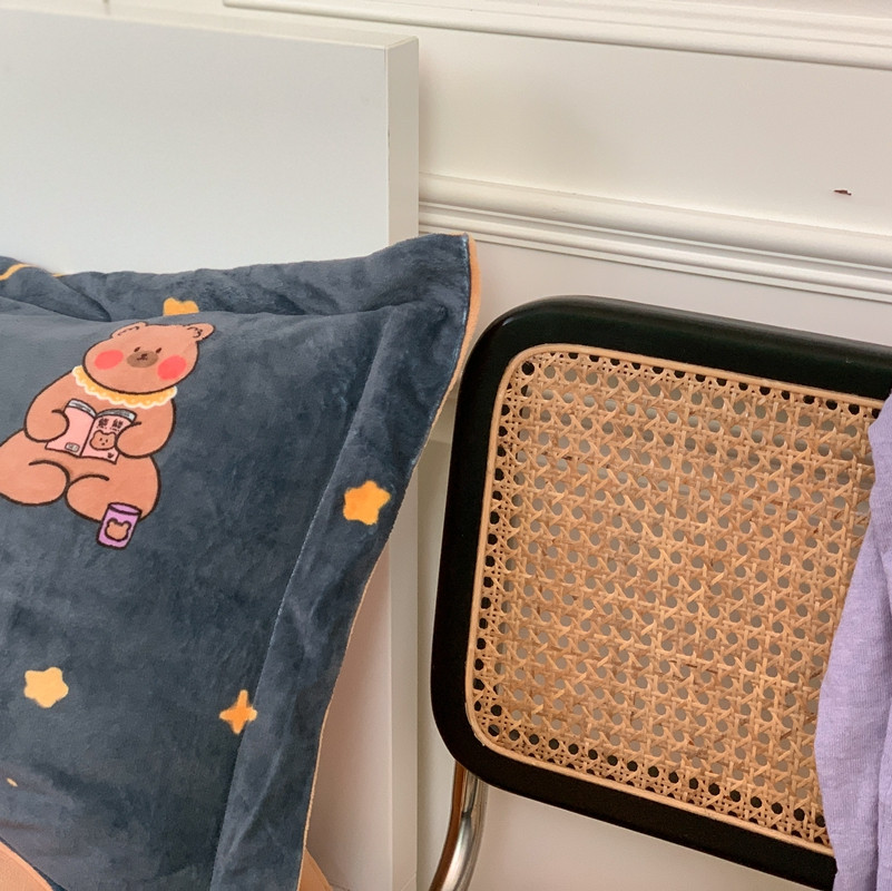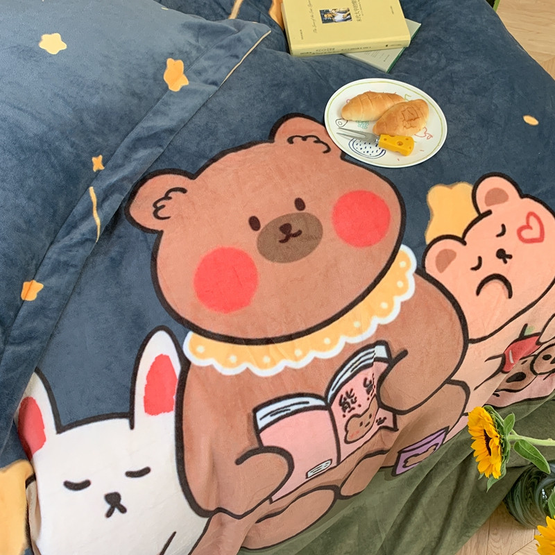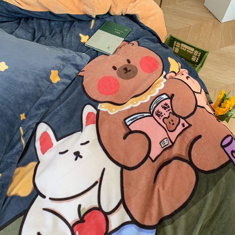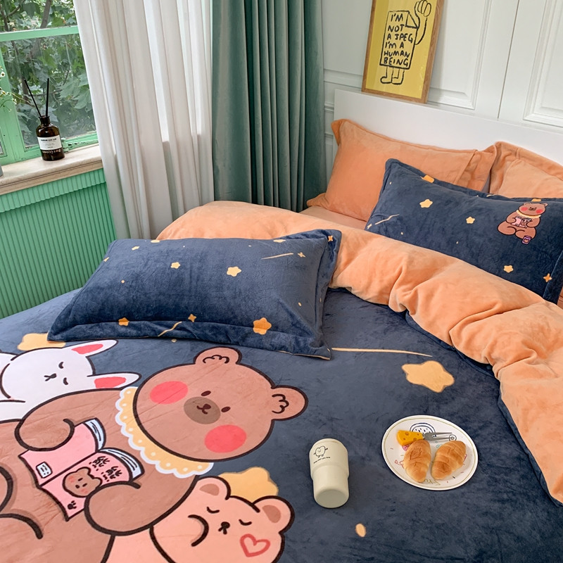 柚子 2020新款牛奶绒印花大版四件套 晚安熊