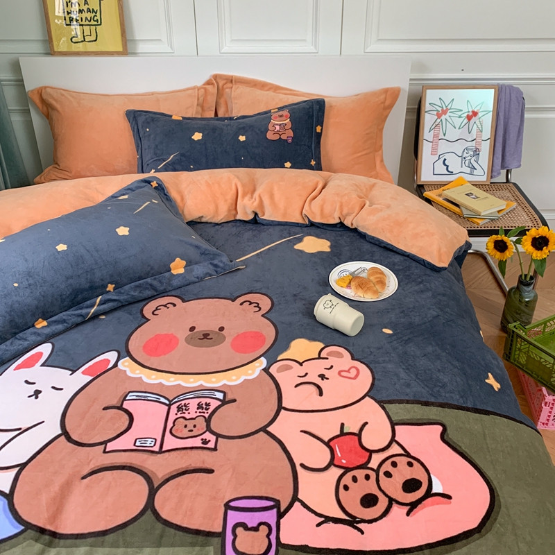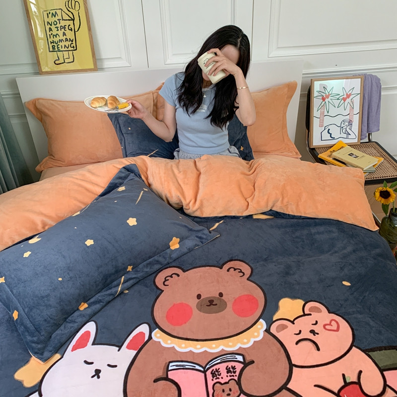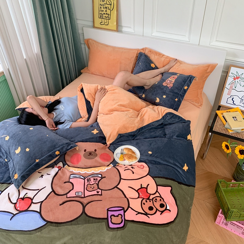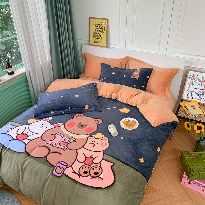 商品名称:柚子 2020新款牛奶绒印花大版四件套 晚安熊