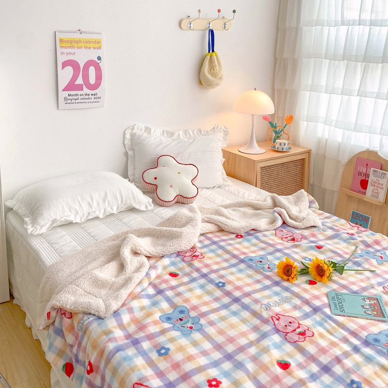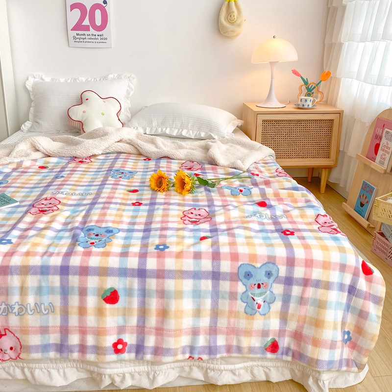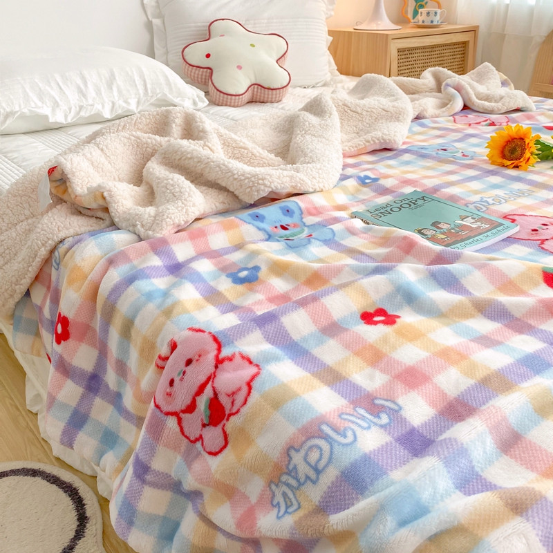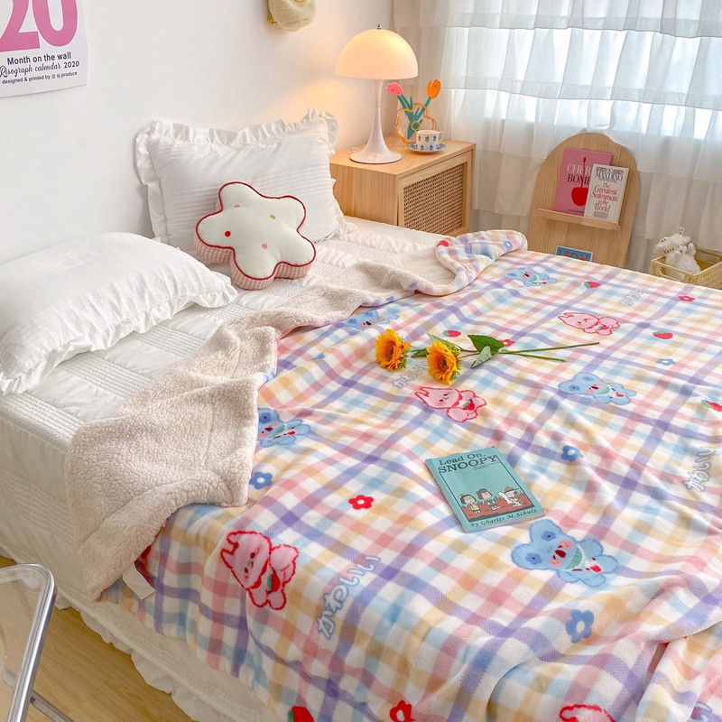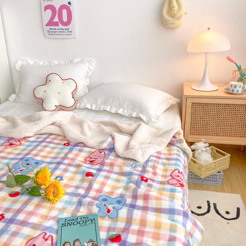 顾里2020新款ins网红少女心温暖牌羊羔绒毯 彩格考拉