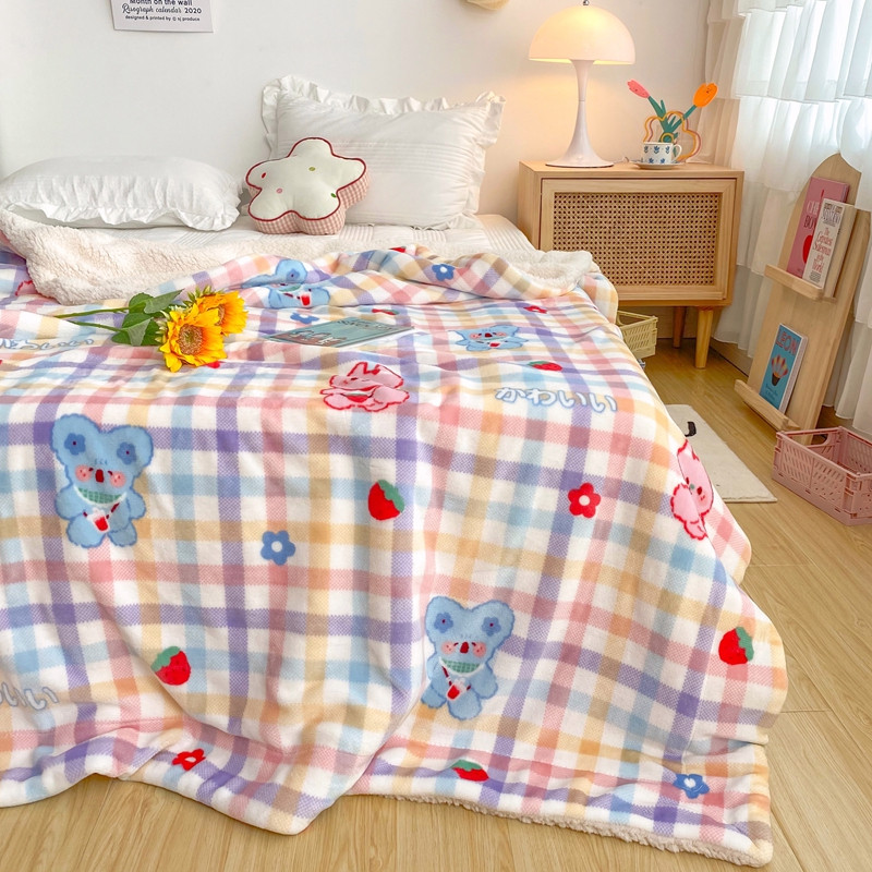 商品名称:顾里2020新款ins网红少女心温暖牌羊羔绒毯 彩格考拉