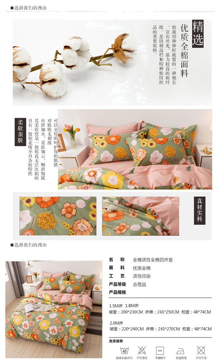 商品名称:星期三 2020年秋冬新款全棉13372四件套(加老板微信有会员价)花野-绿