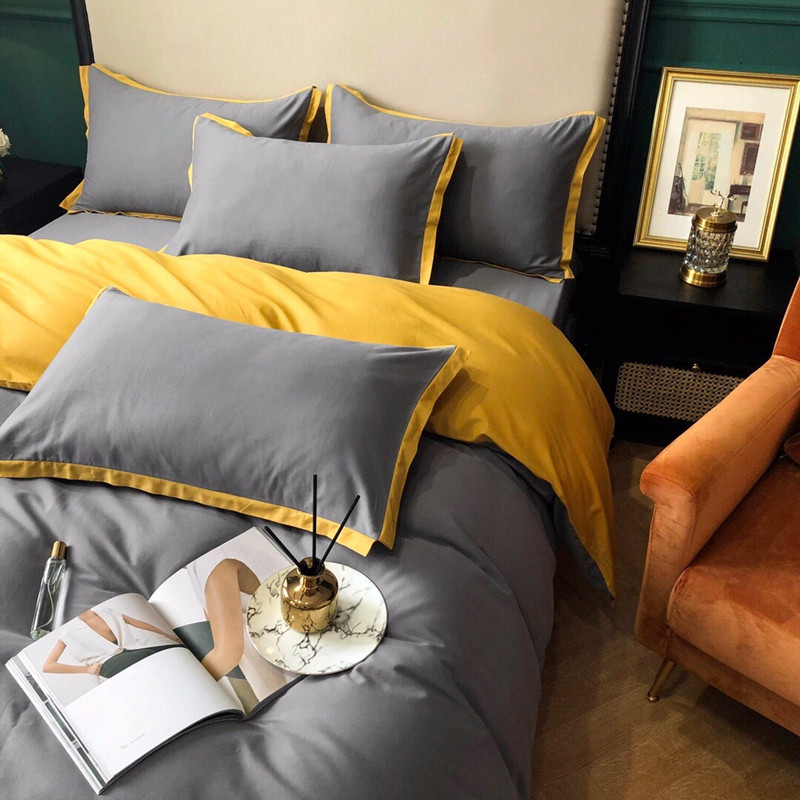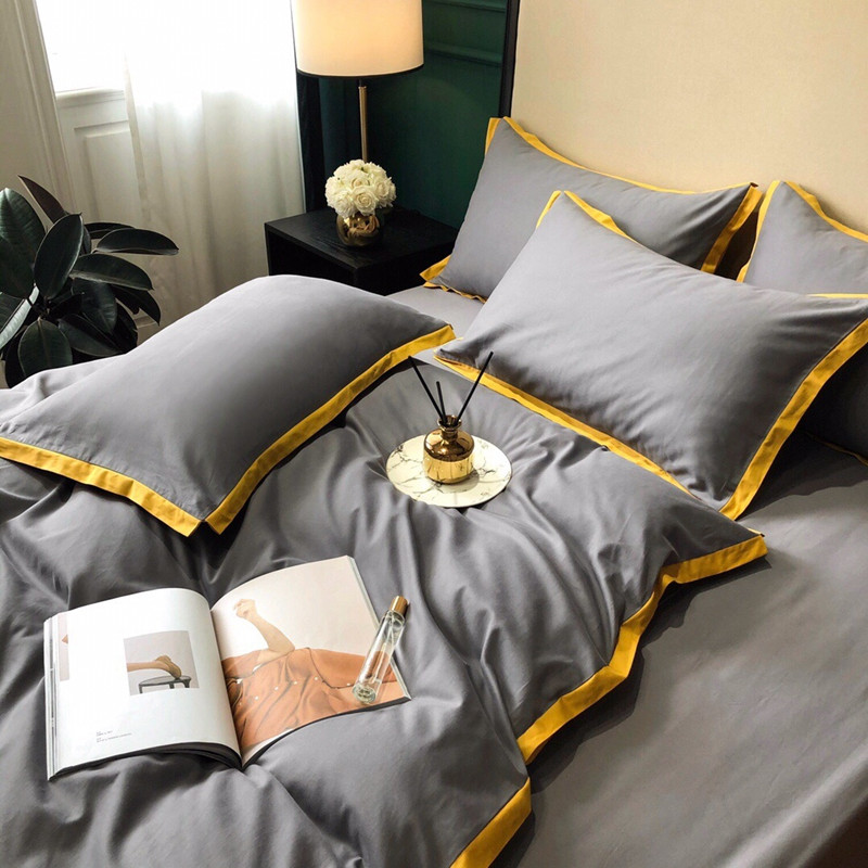 (总)玖玖爱家纺 2023新款100支贡缎长绒棉四件套,粉色,灰,金色,橘色,绿色,水蓝