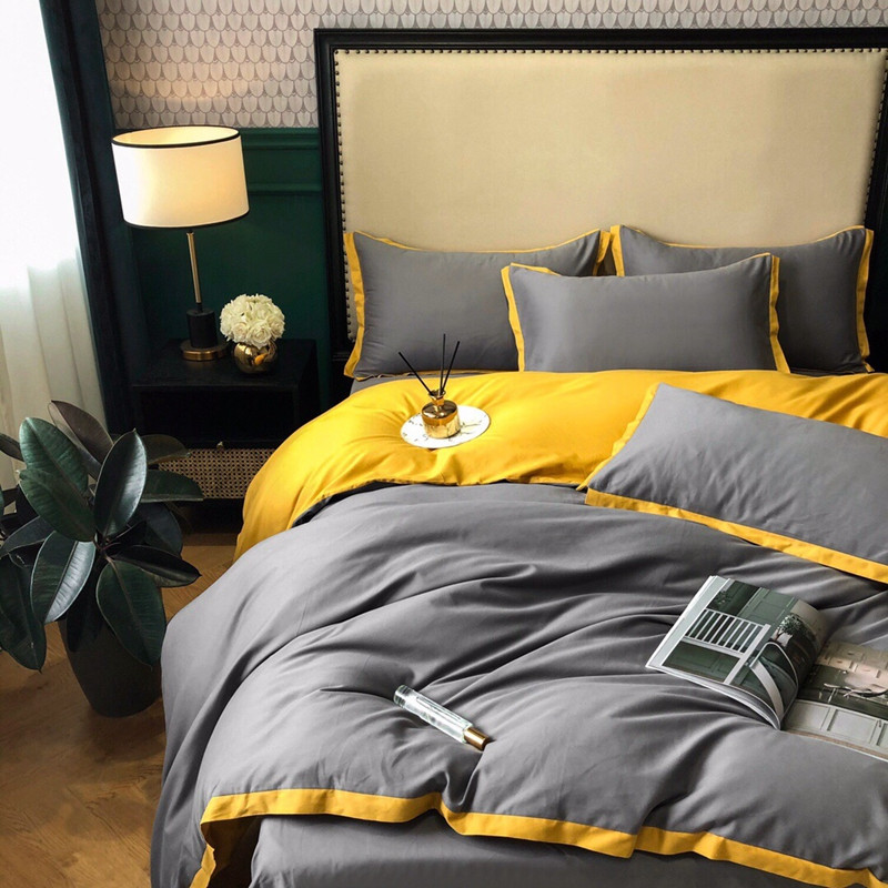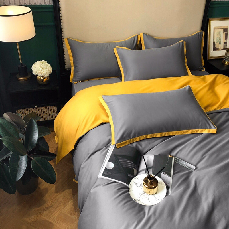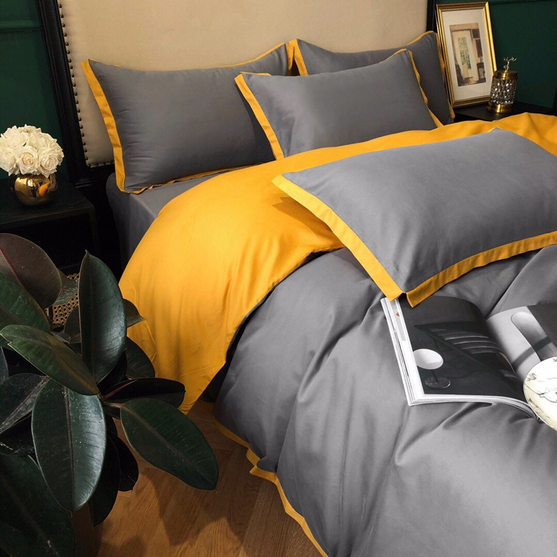 玖玖爱 2020新款贡缎磨毛四件套 灰黄