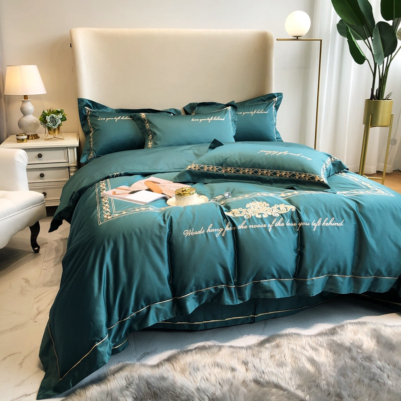 商品名称:馨蕊家居 2021新品春夏高定100支艾丽莎四件套 艾丽莎云衫绿