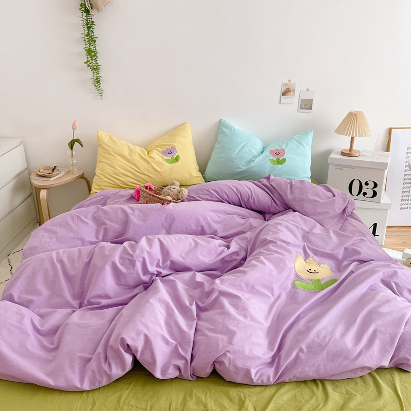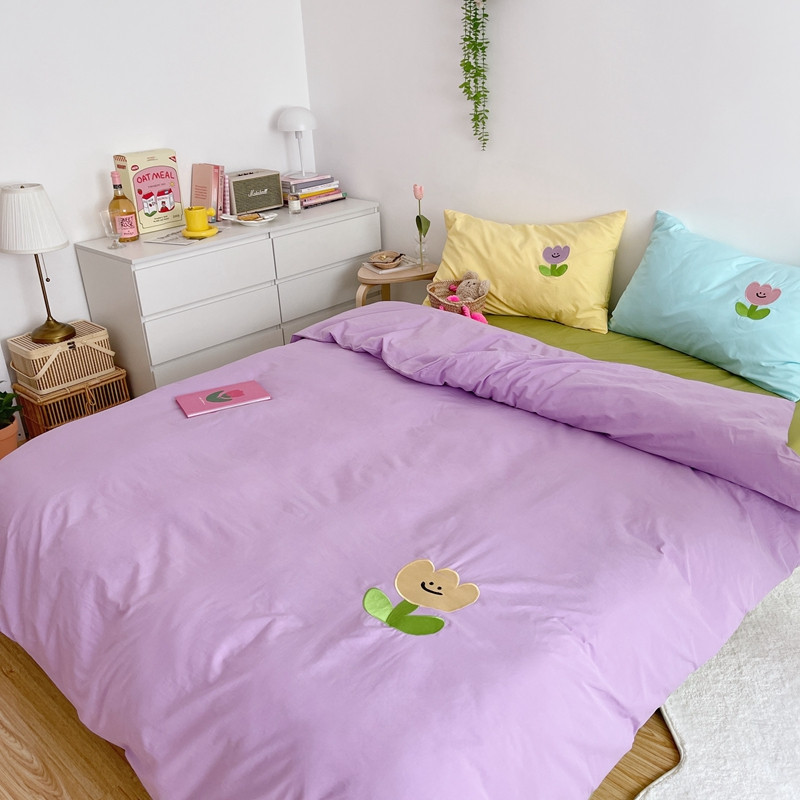 商品名称:星期八 2021新款马卡龙趣味水洗棉四件套 笑脸花