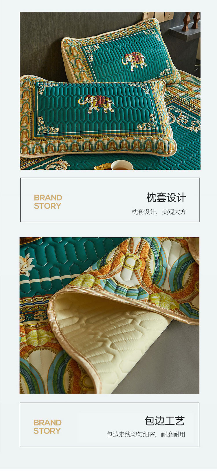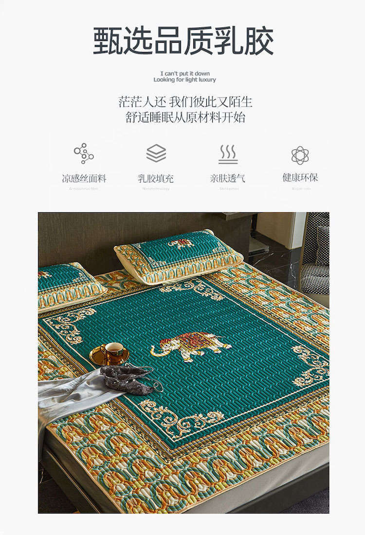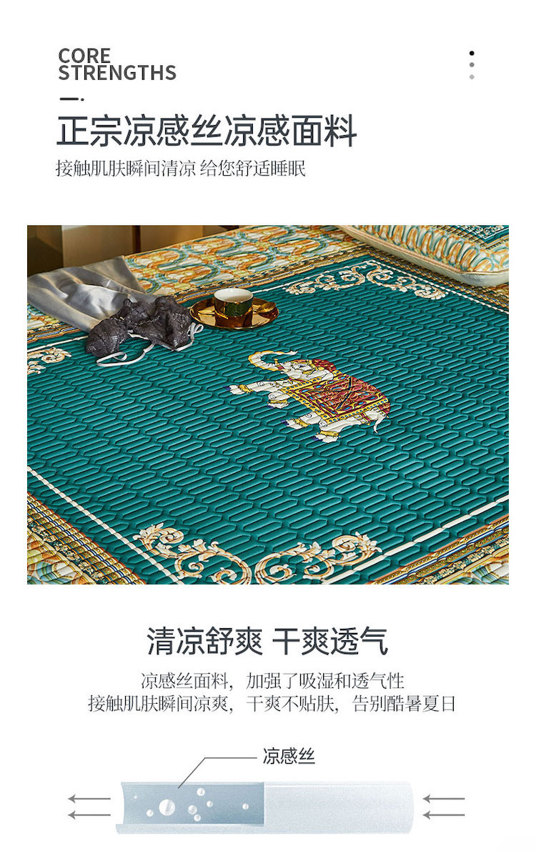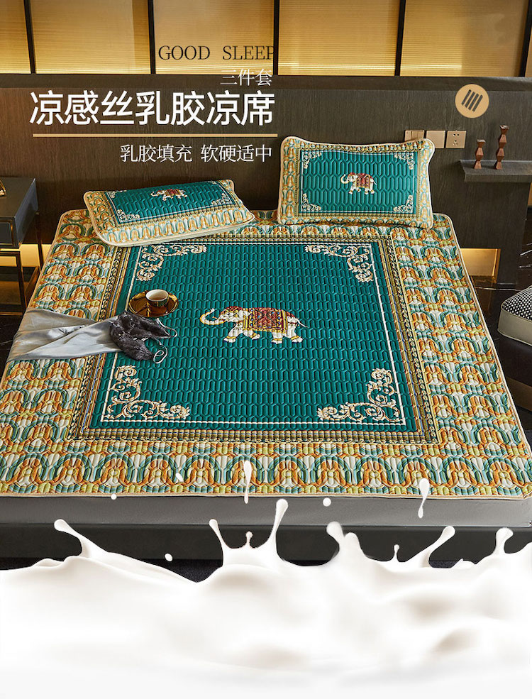 商品名称:凡客 2022春夏新款大版数码印花凉感丝乳胶凉席三件套 韶华