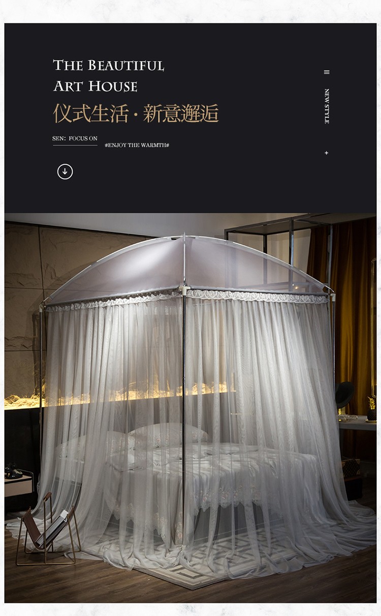 (总)飞轮海蚊帐 2023新款三开门落地遮光蚊帐-L-93,高级灰,芥末绿,奶油黄,香槟