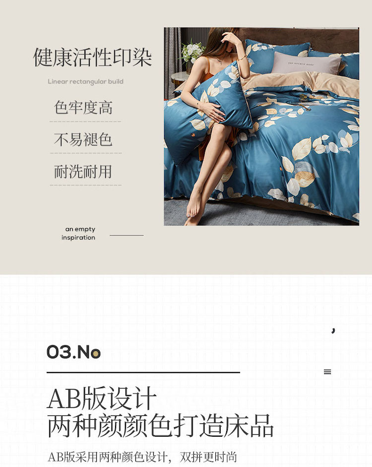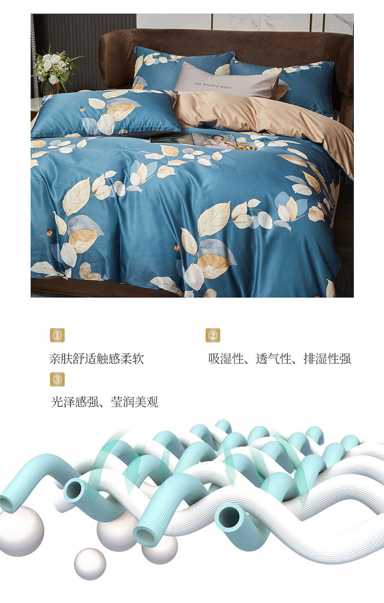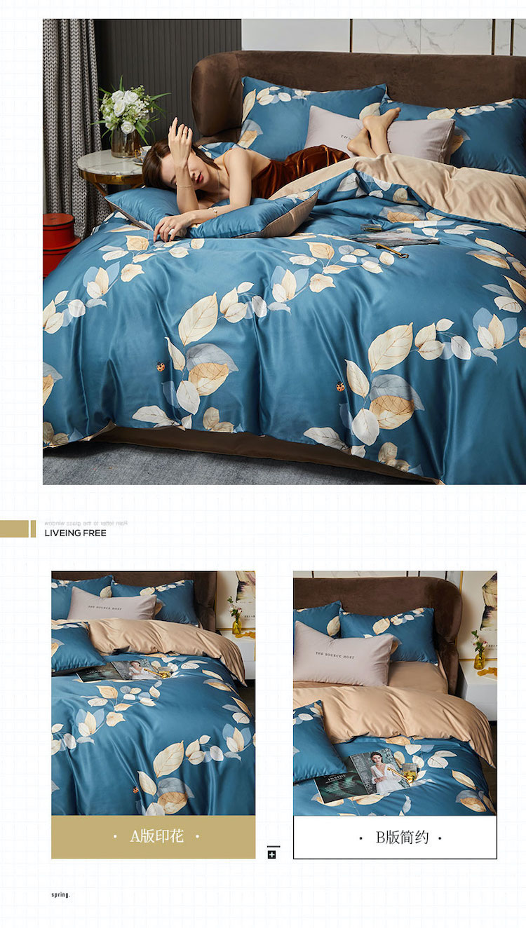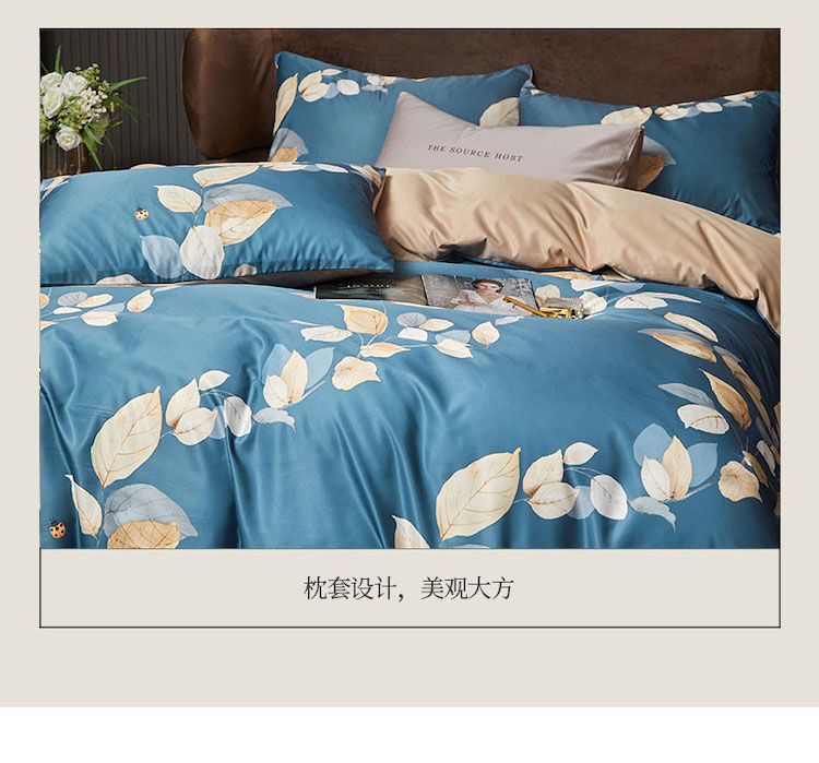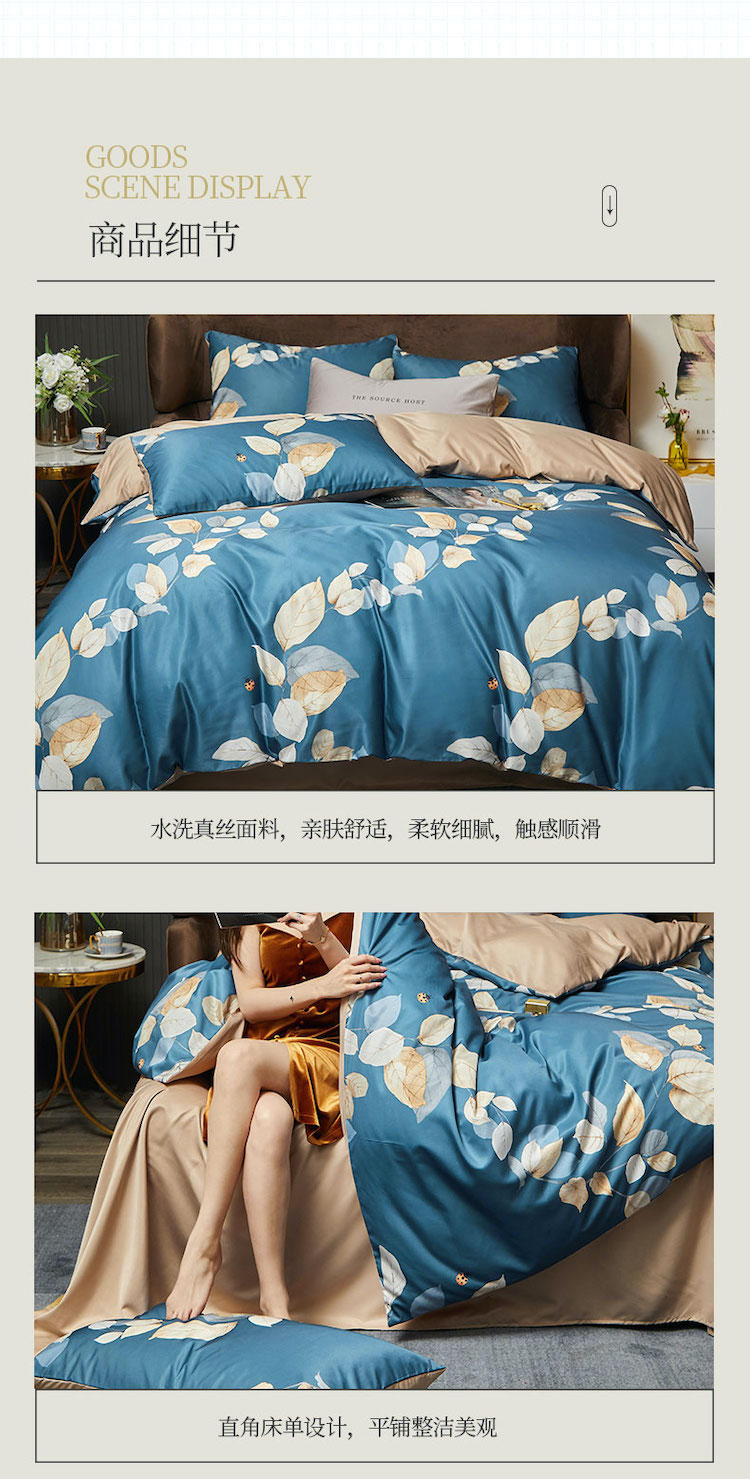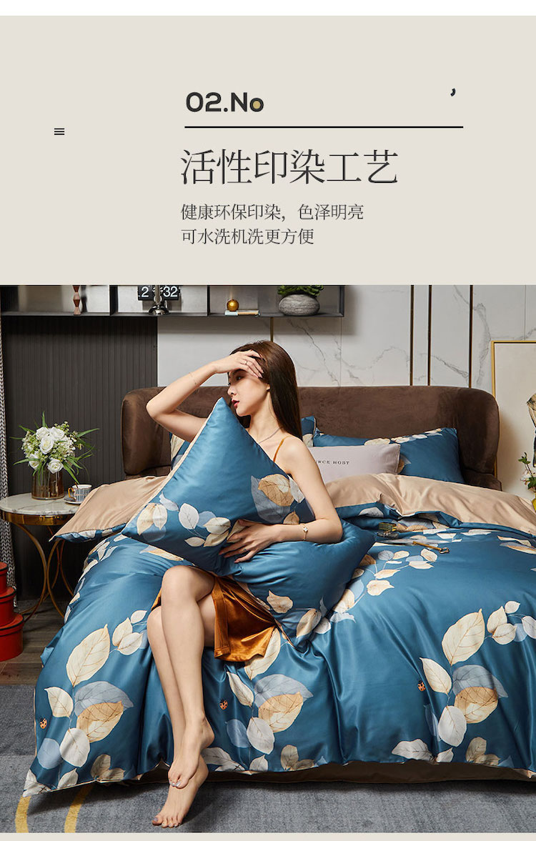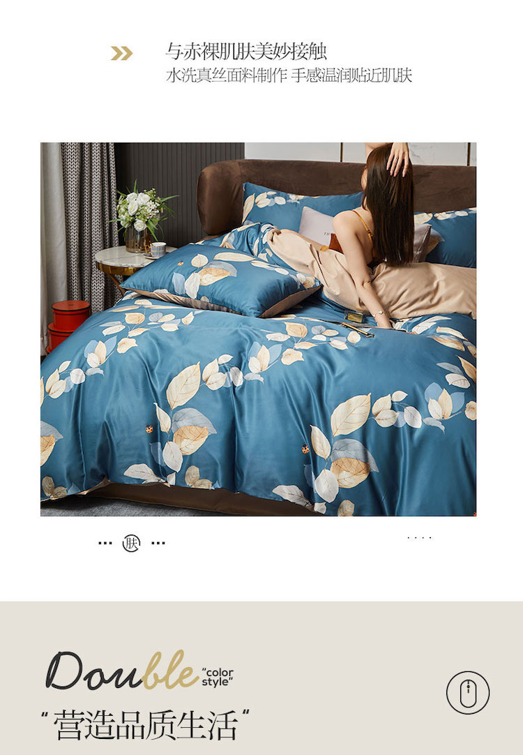 商品名称:凡客 2021春夏新款60支水洗真丝数码印花四件套轻奢风系列 叶语魅人