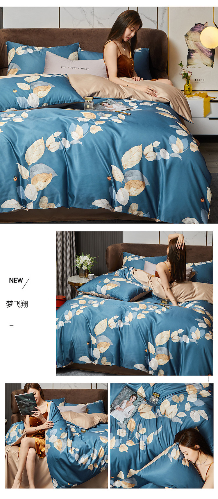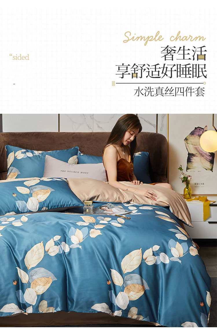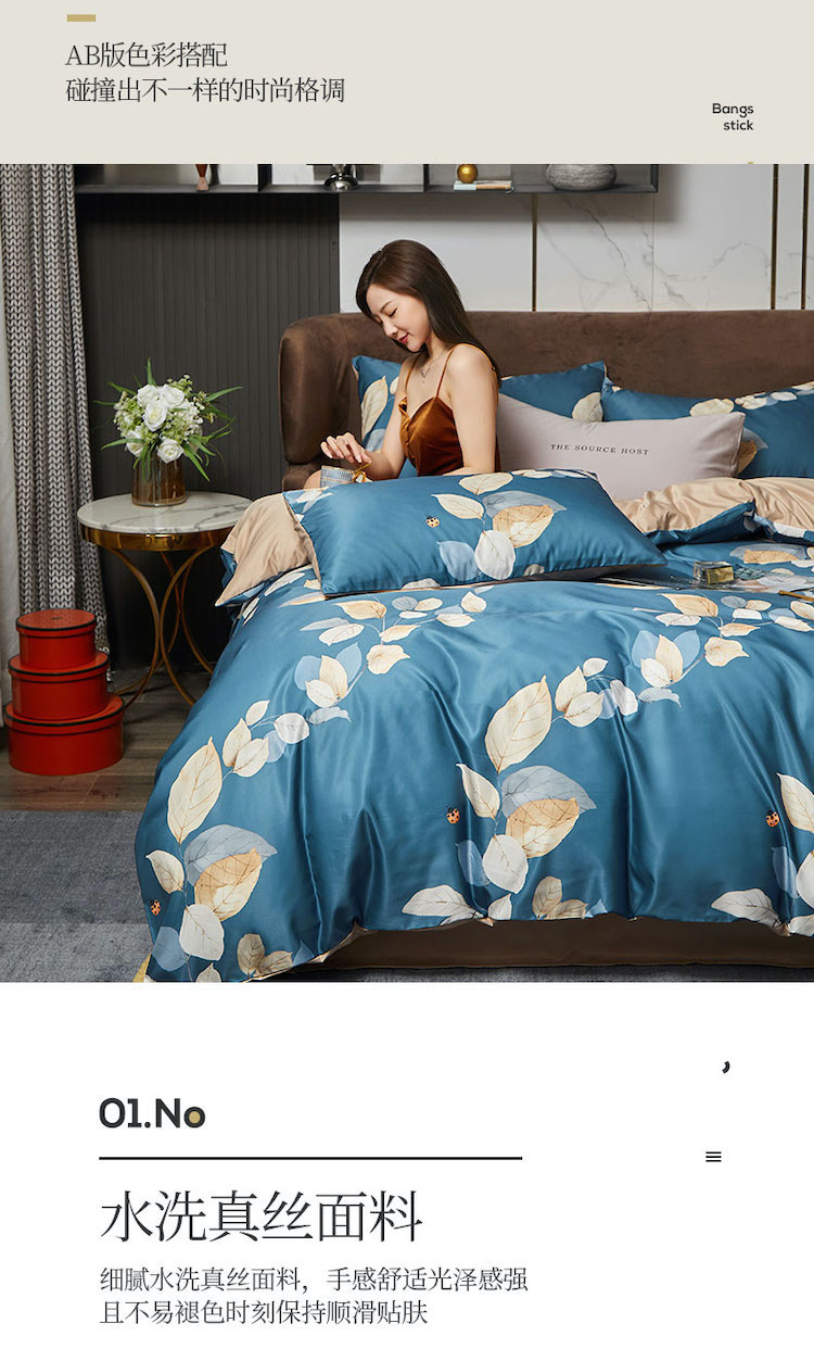 凡客 2021春夏新款60支水洗真丝数码印花四件套轻奢风系列 叶语魅人