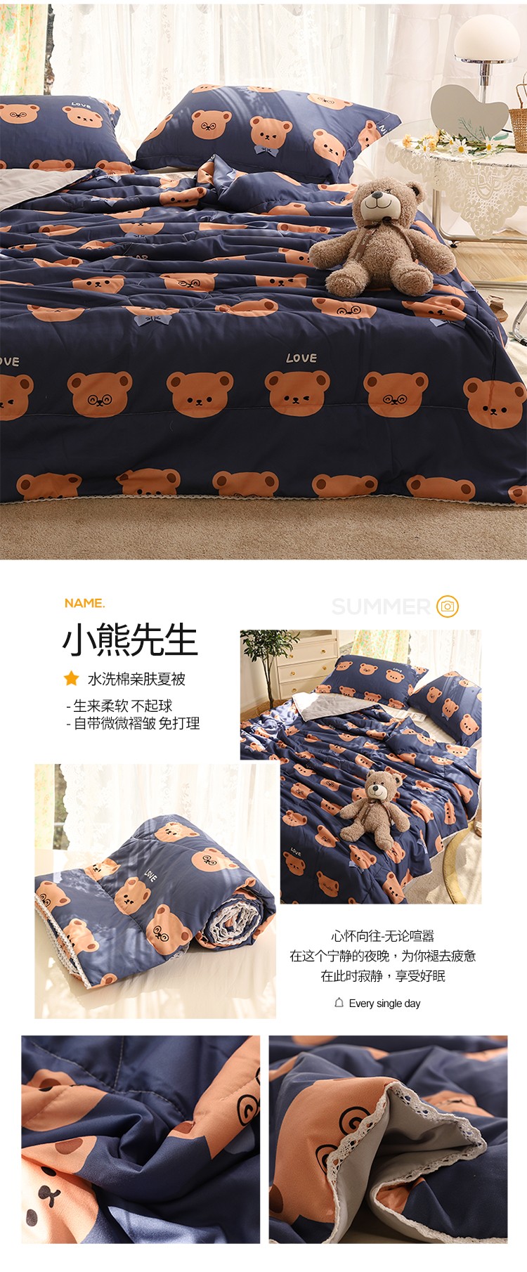 商品名称:慕尚 2025新款水洗棉夏被实拍图 小熊先生