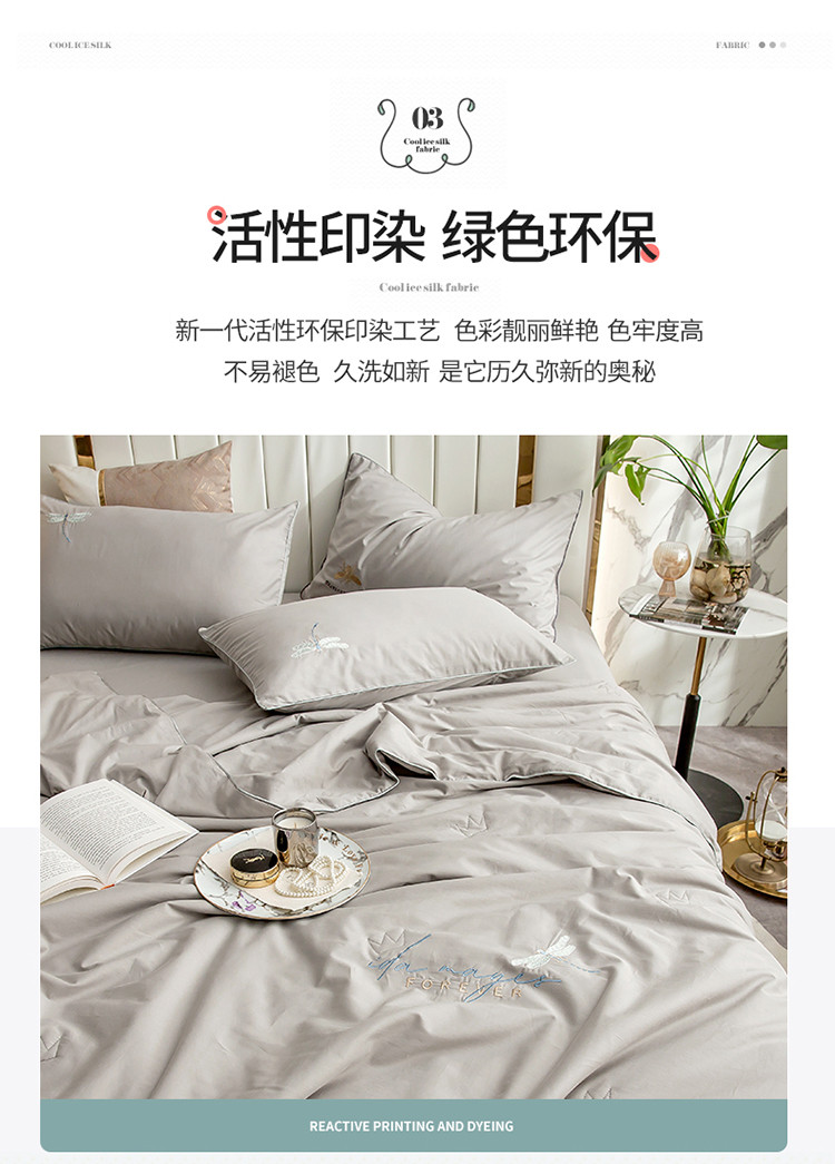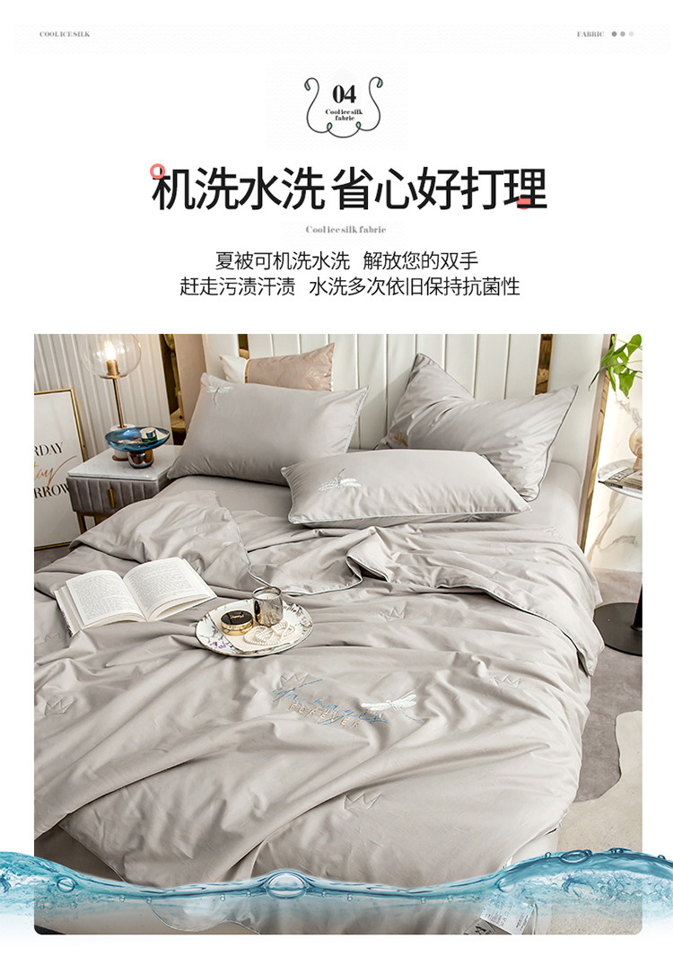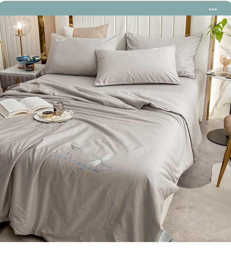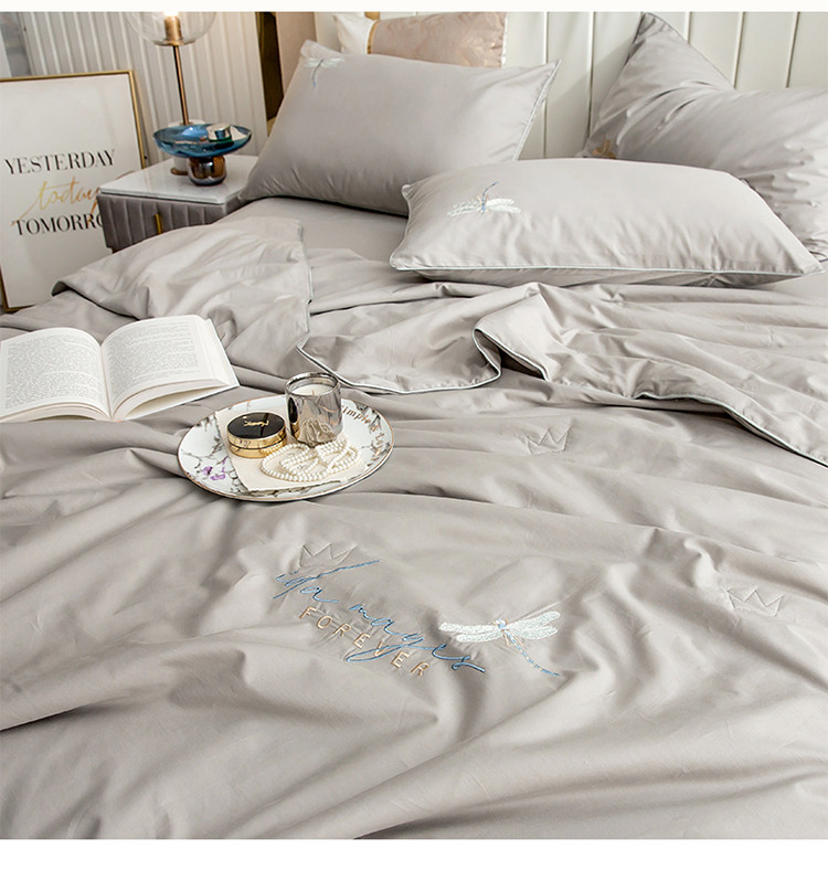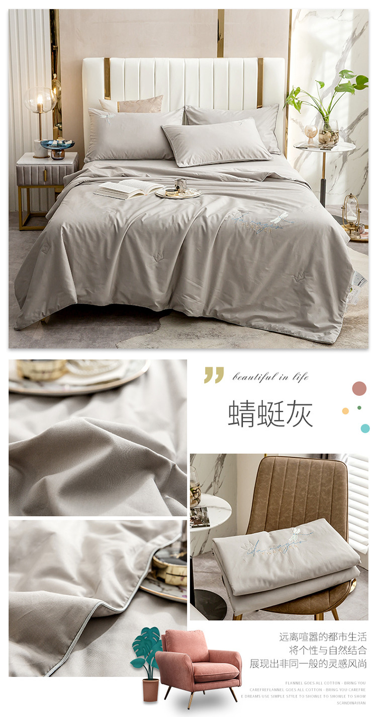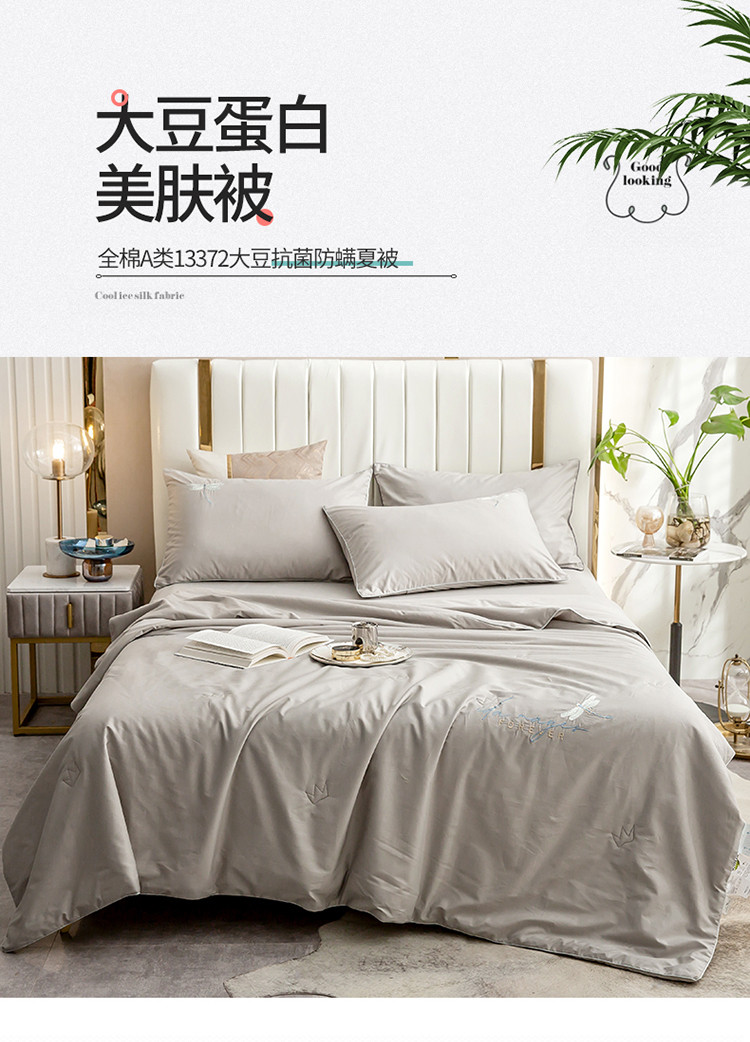 • 91家纺网 家纺一手货源 找家纺 头等舱2022全棉A类大豆抗菌防螨夏被四件套蜻蜓 蜻蜓灰-棚拍图