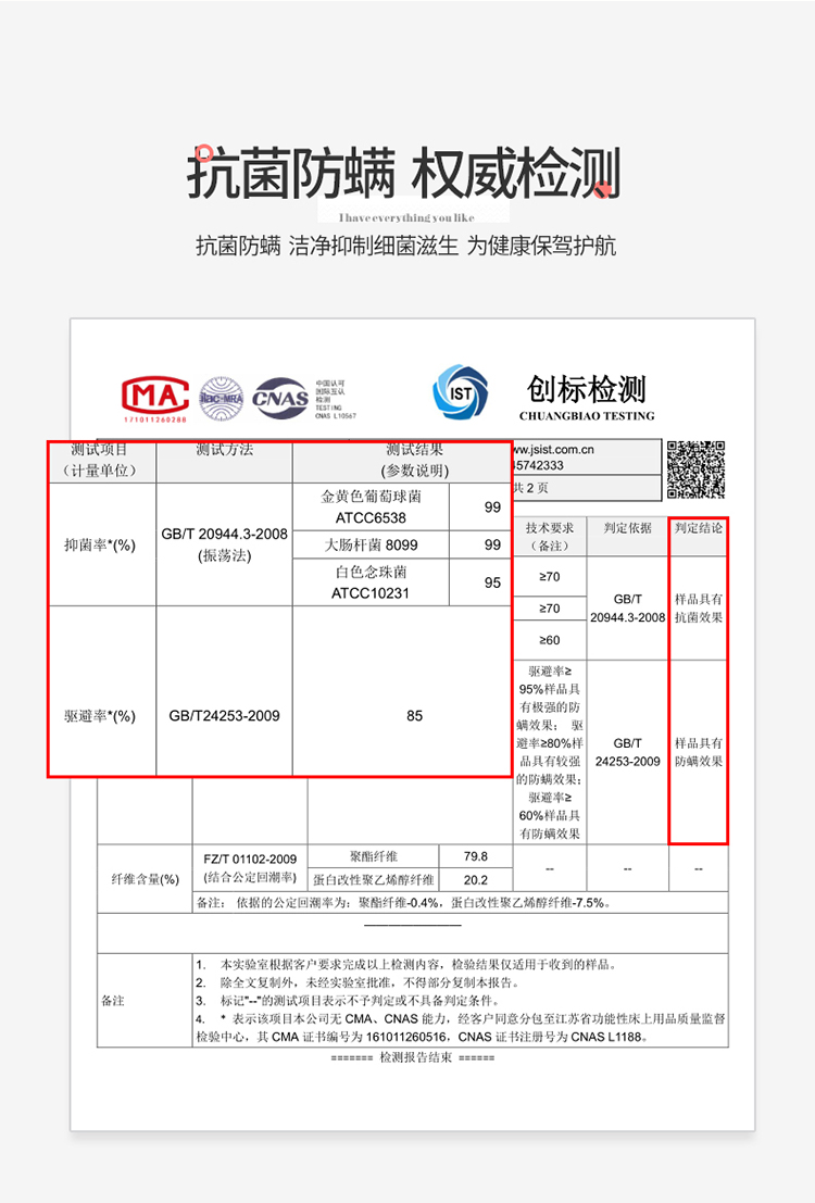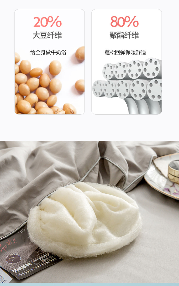 • 填充纤维种类: 大豆蛋白改性聚酯纤维