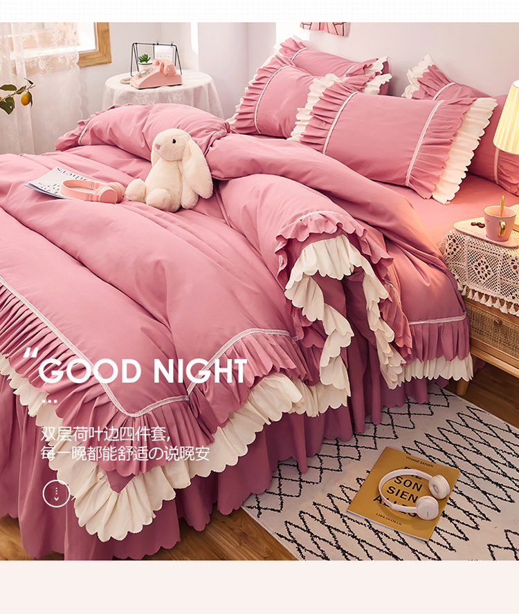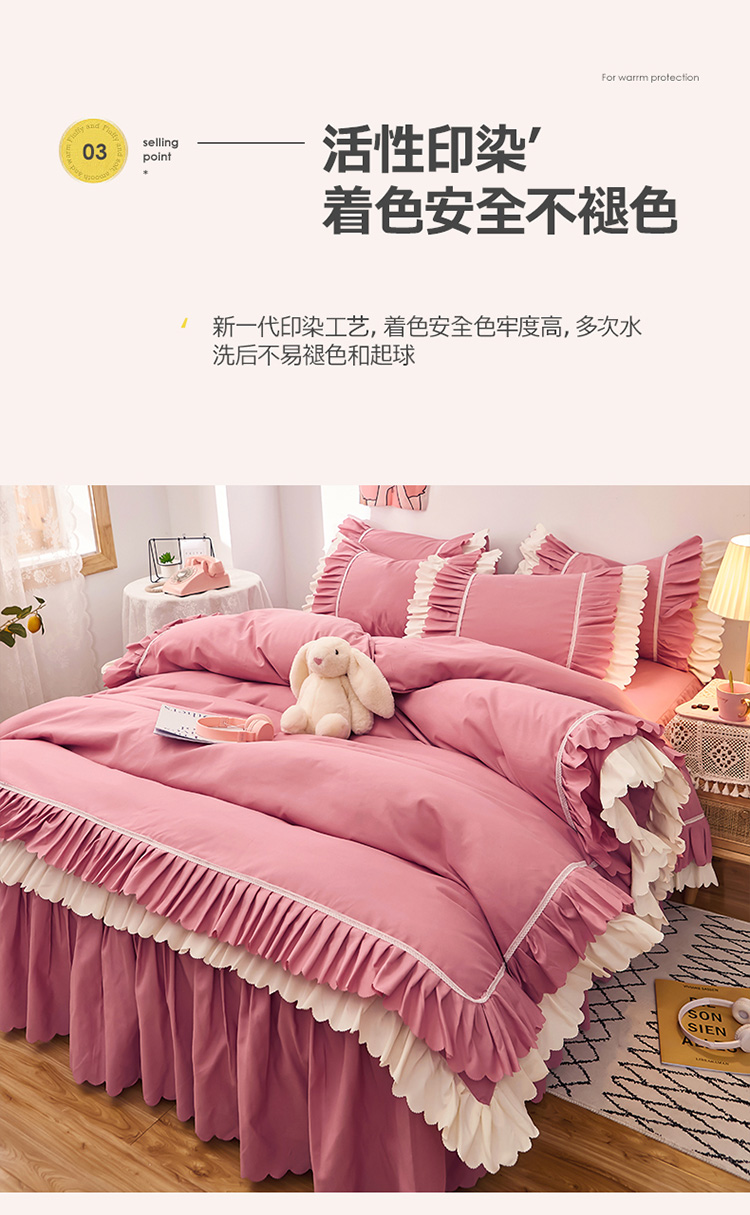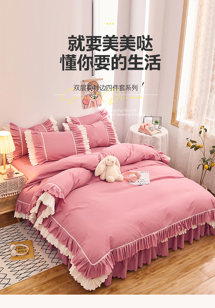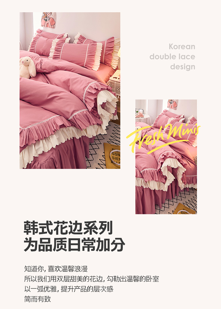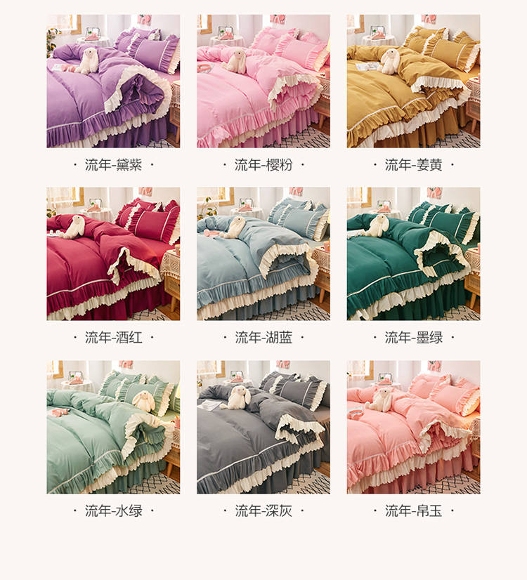 当前位置: 91家纺网 > 商品网购 > 床品套件 > 四件套 > 普通磨毛四件套 > 2025新款莉莉安流年系列床裙三件套四件套韩版四件套流年豆沙