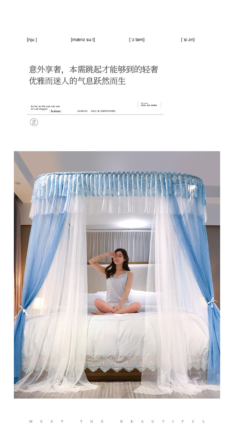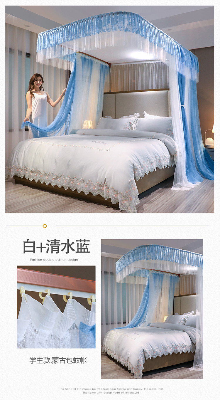(总)飞轮海蚊帐 新款双层方顶宫廷落地蚊帐-LX91,双层嫩粉,双层香槟,双拼蓝绿,双拼清水蓝