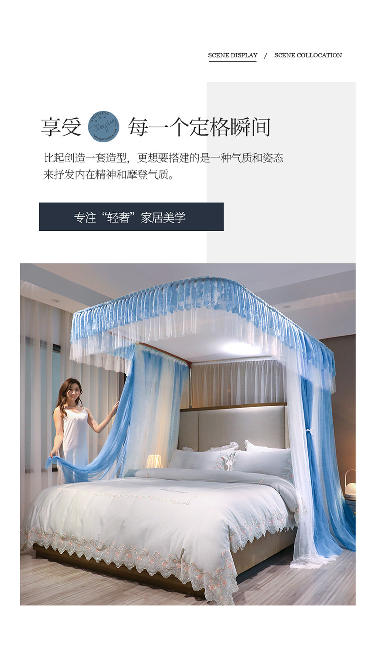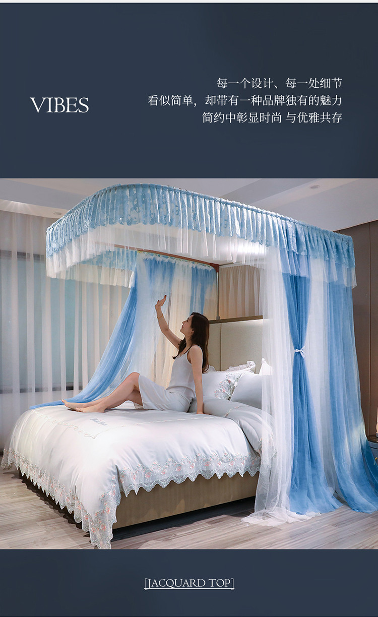 (总)飞轮海蚊帐 2023新款U型三开门遮光坐床蚊帐-Z-75,黛蓝,奶油黄,香槟