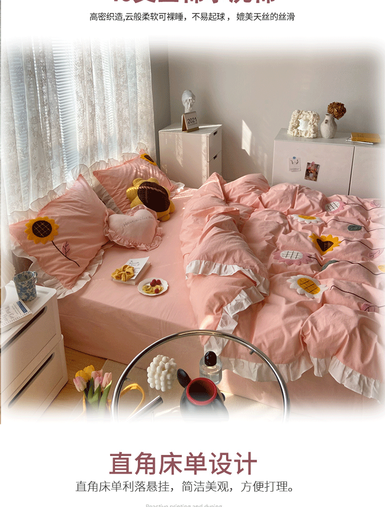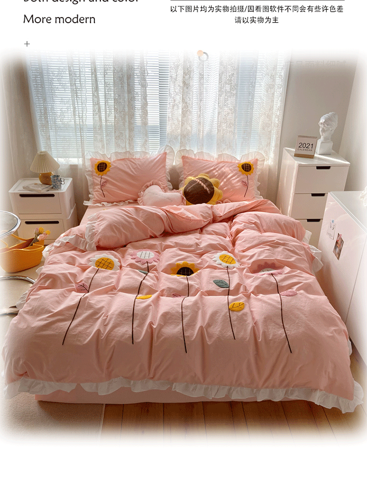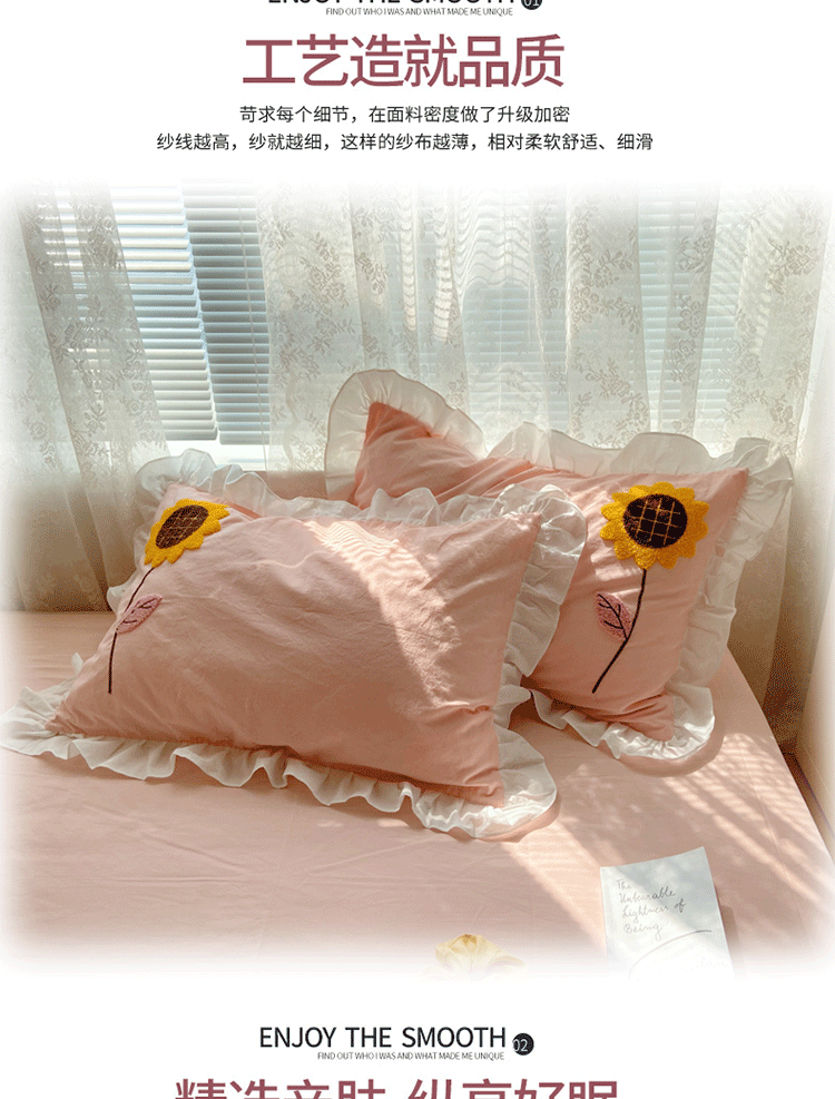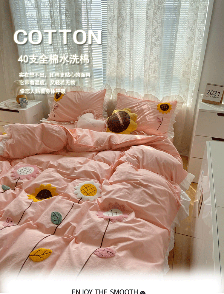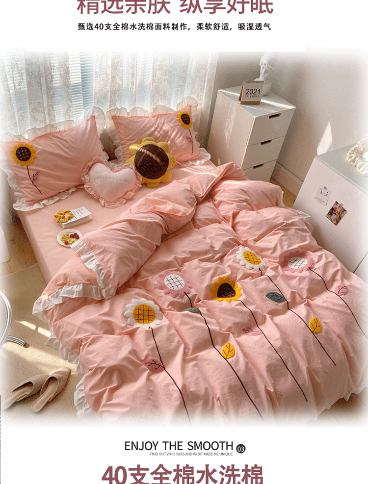 淑女公社 2021新款全棉毛巾绣向日葵系列四件套 粉色