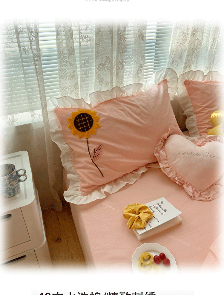(总)淑女公社 2022新款全棉四件套纯棉少女心事系列直播,初恋粉,奶油黄,春天绿,海洋蓝