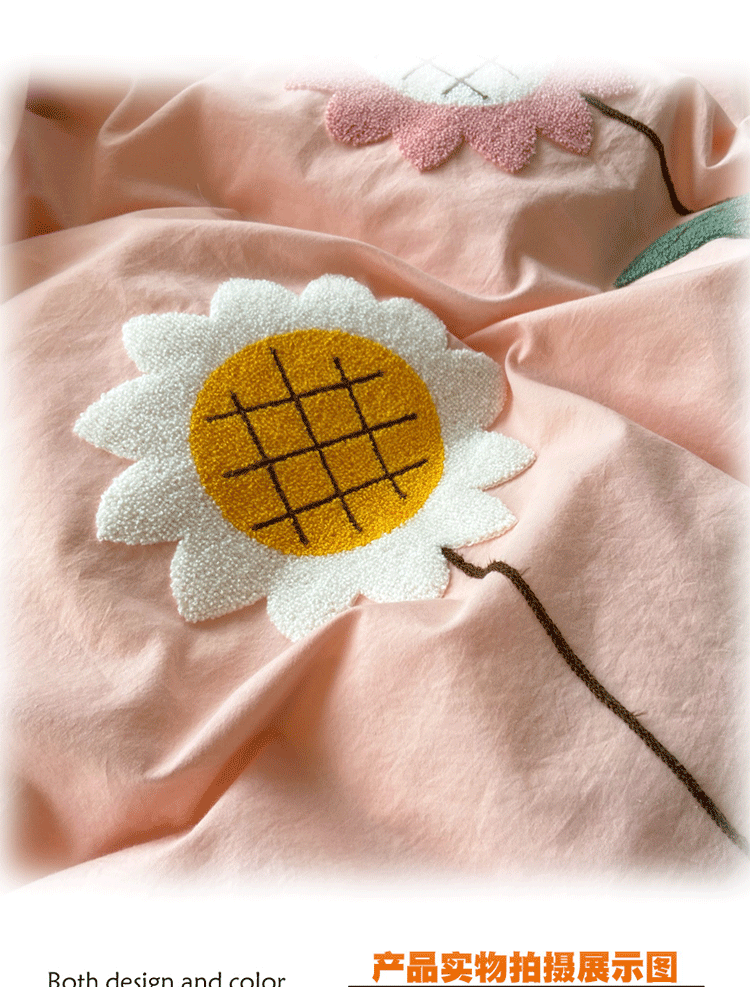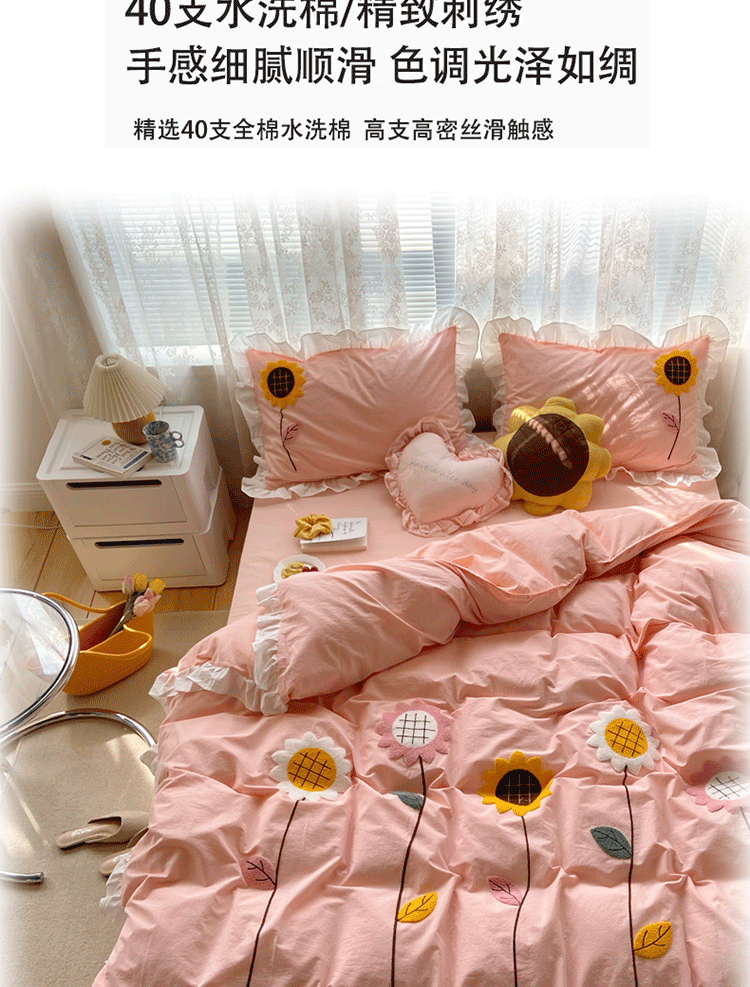 商品名称:淑女公社 2021新款全棉毛巾绣向日葵系列四件套 粉色