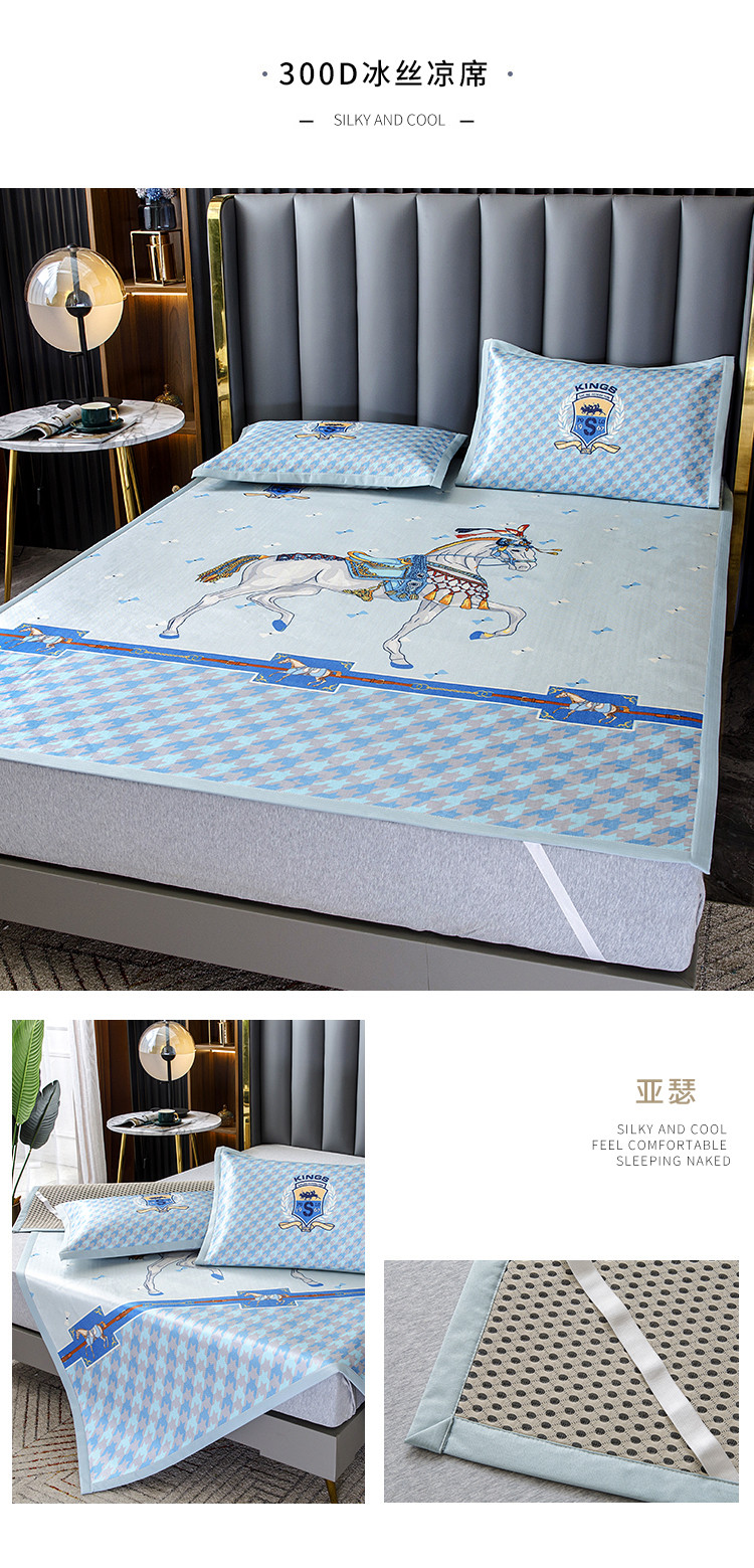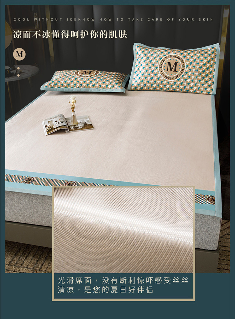 商品名称:小芽家居 2024新款冰丝斜纹提花凉席三件套 亚瑟
