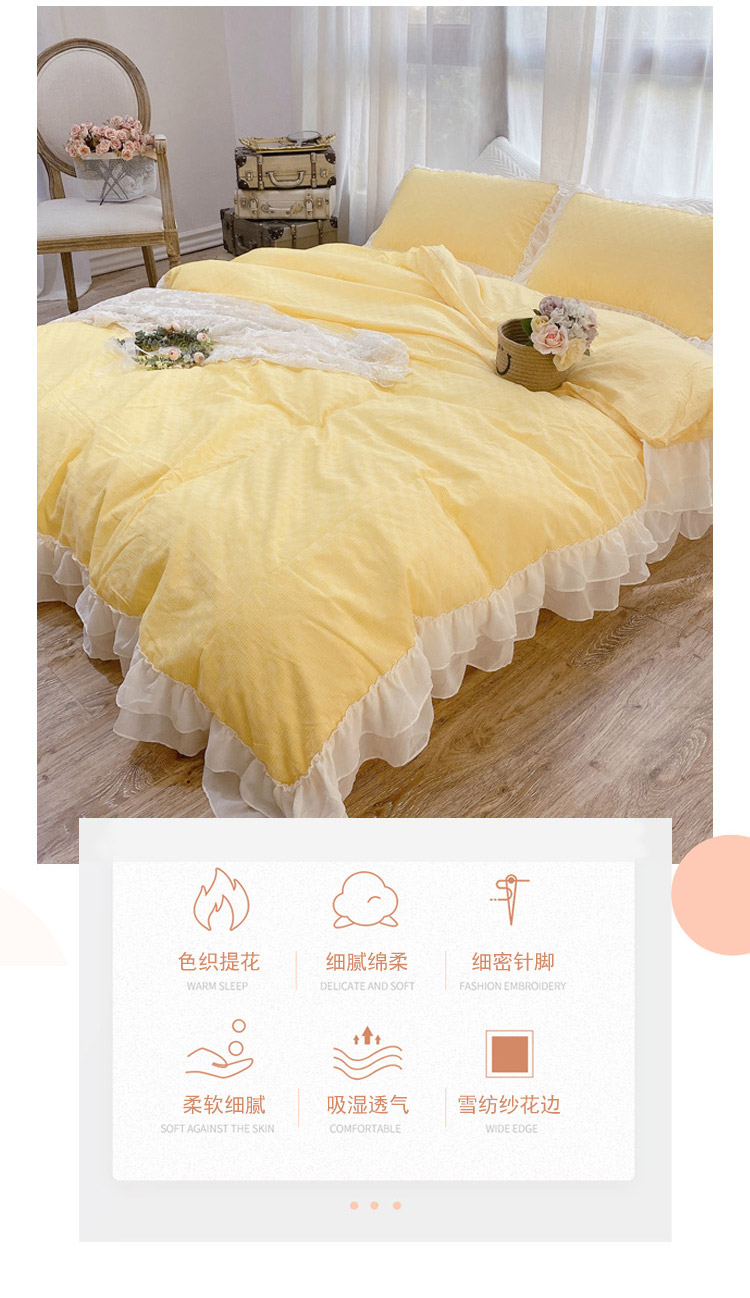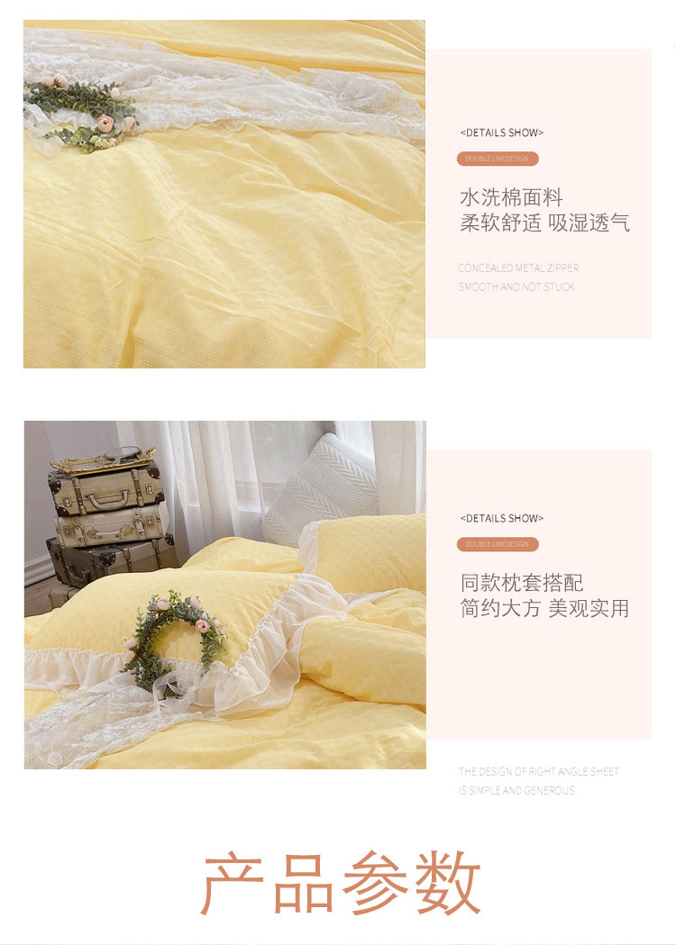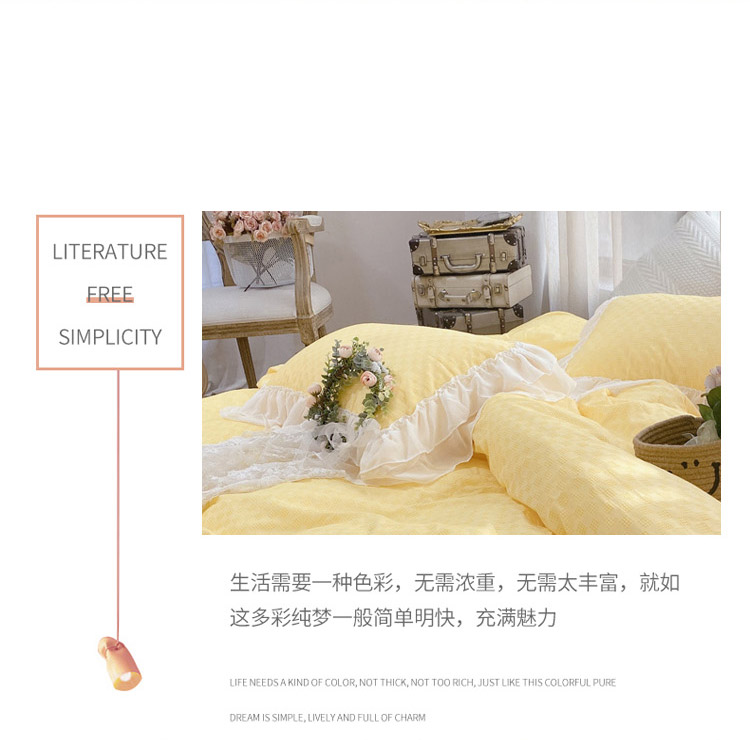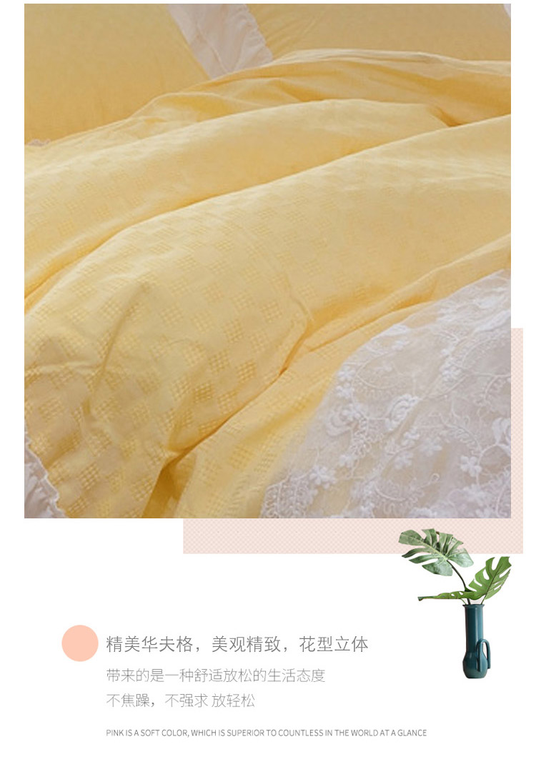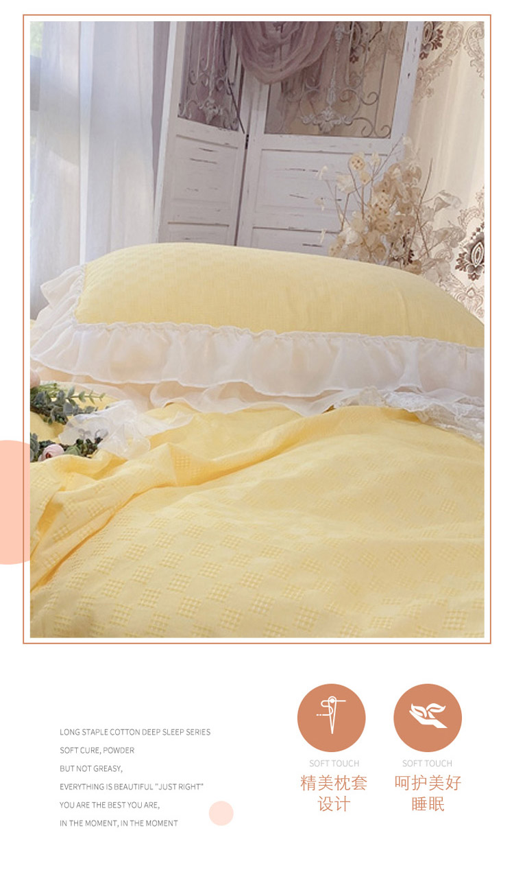 商品名称:玛奇朵 2021新款华夫格雪纺纱全棉色织提花四件套华夫格-黄