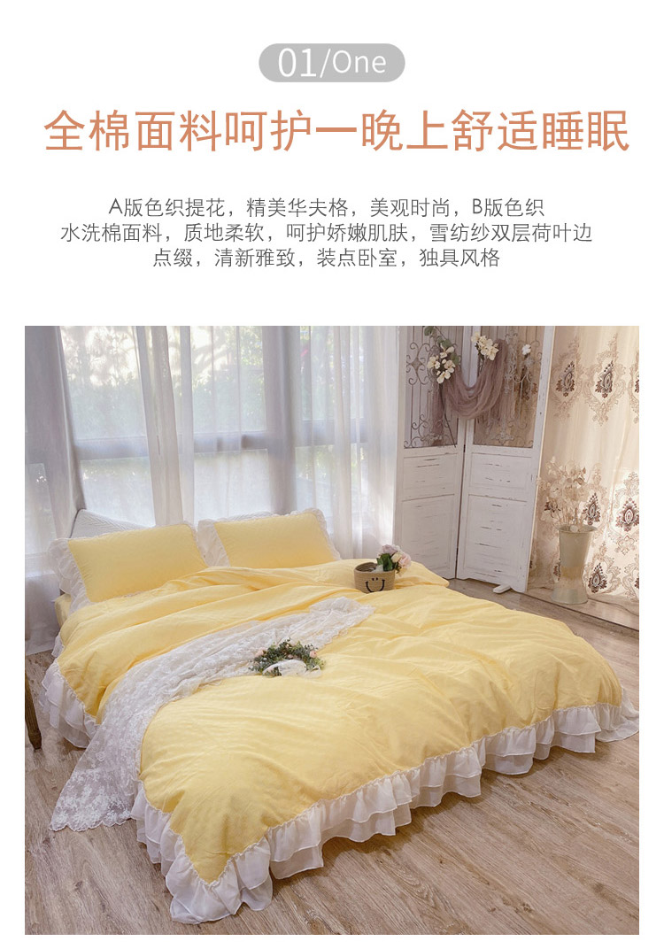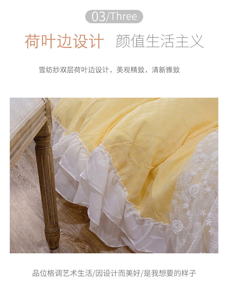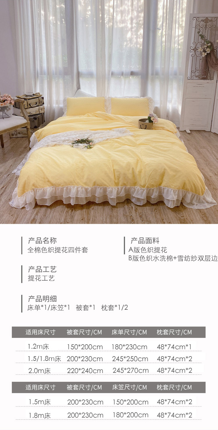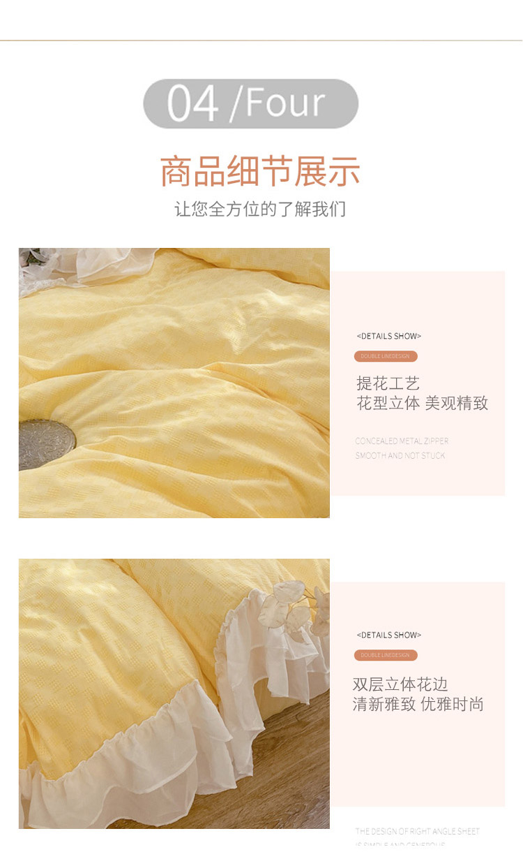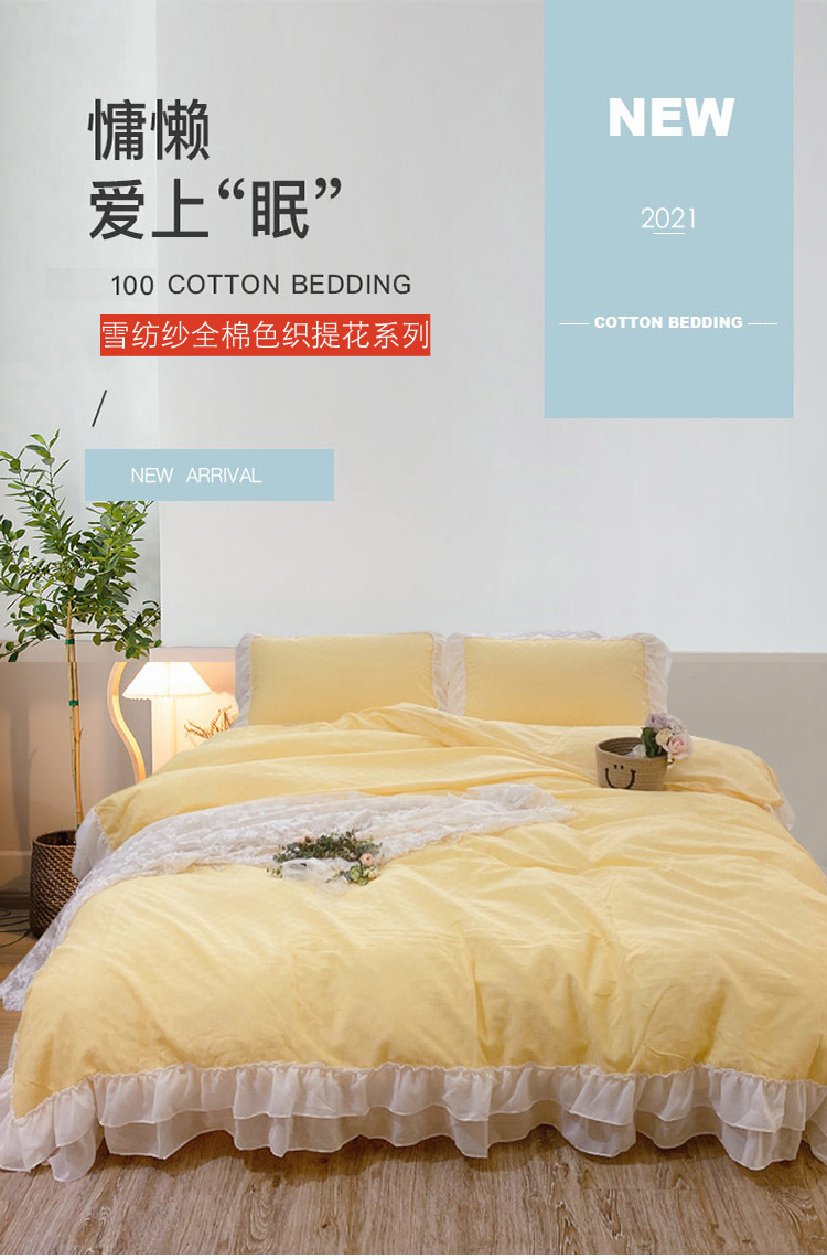 商品名称:玛奇朵 2021新款华夫格雪纺纱全棉色织提花四件套华夫格-黄
