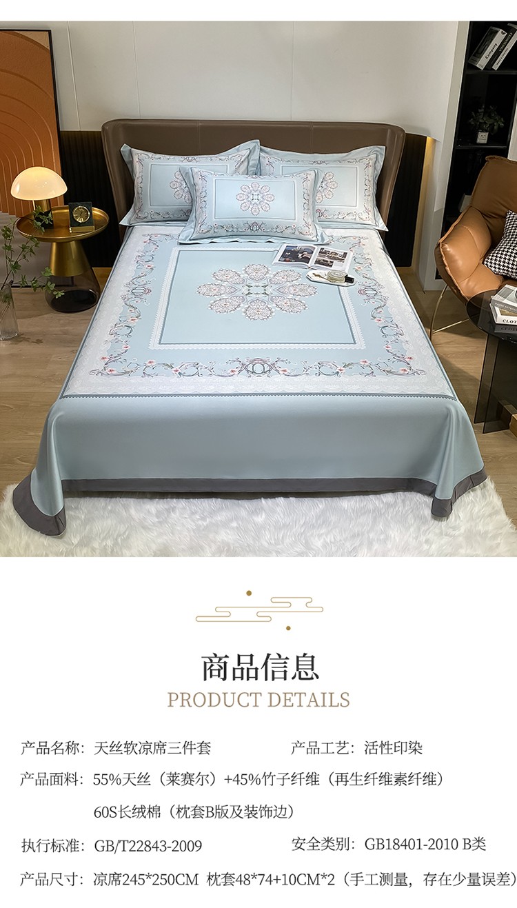 眠帛家居 2021新款数码竹语天丝凉席三件套 花舞