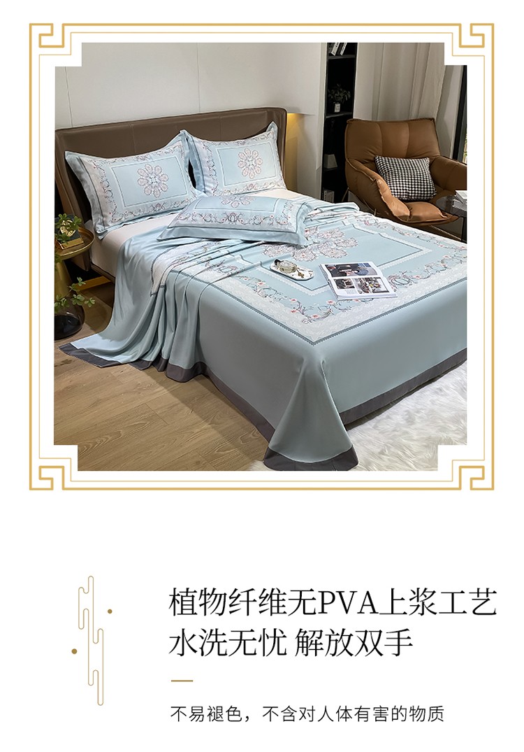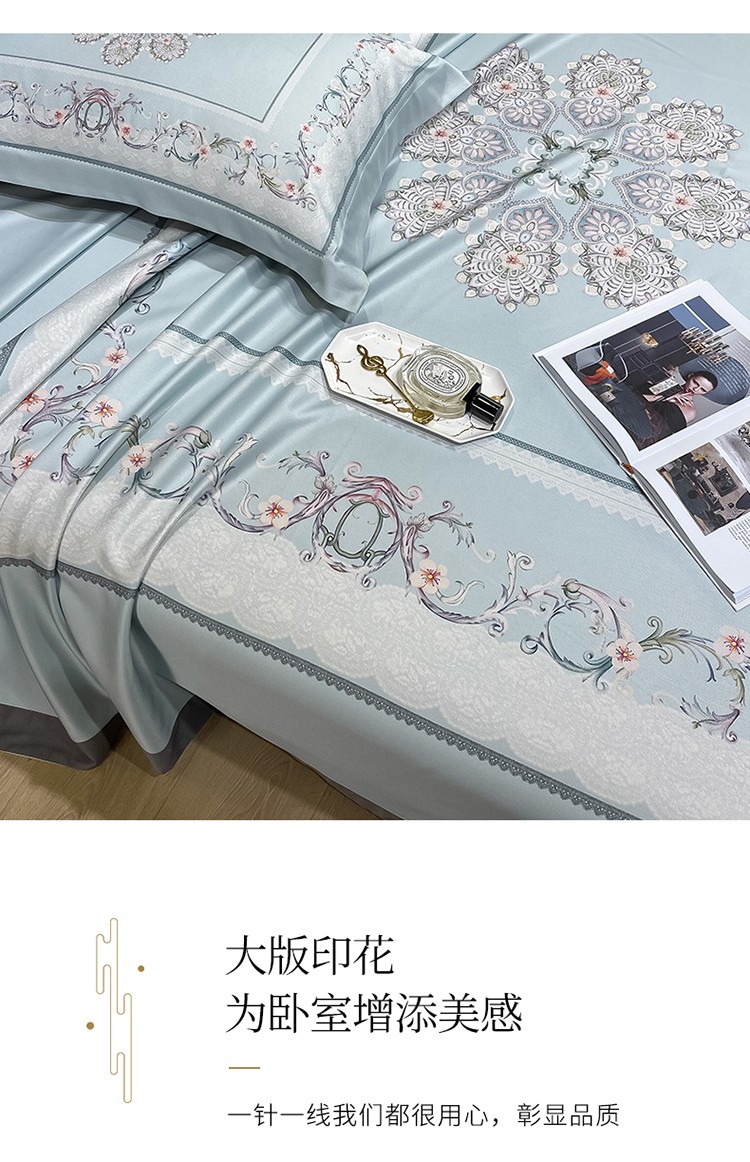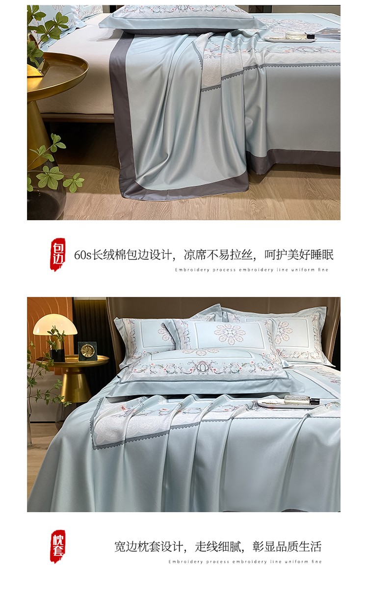 总眠帛家居2022新品60支兰精天丝气质轻奢绣花四件套-盛夏,盛夏-粉,盛夏-蓝,盛夏-绿