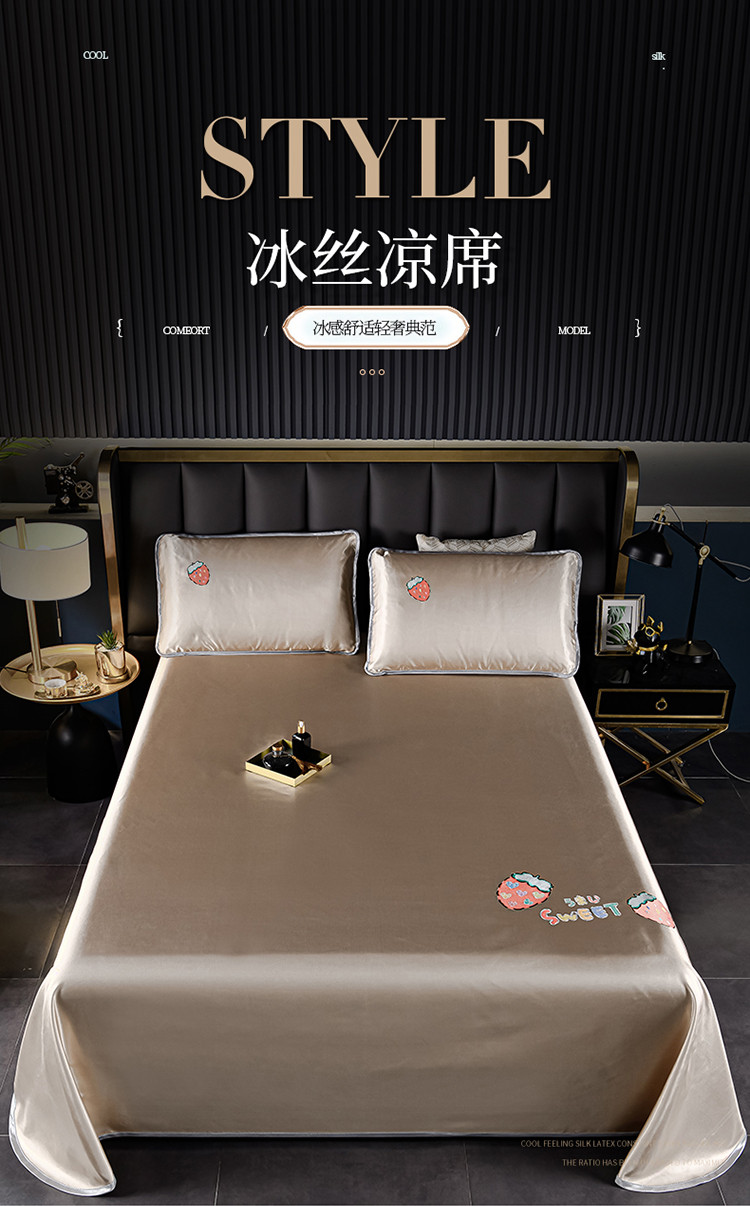 商品名称:芃成家纺 2021新款冰丝凉席刺绣床单款 草莓咖色