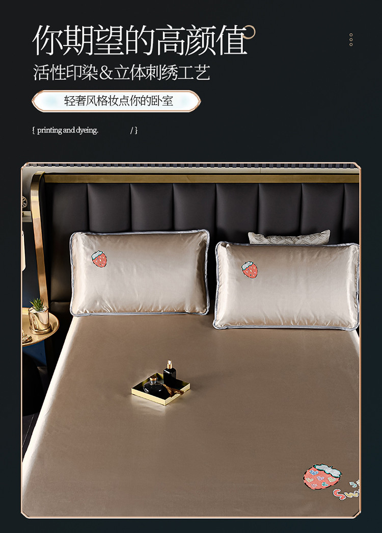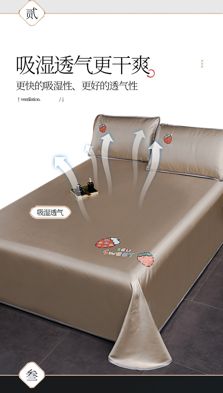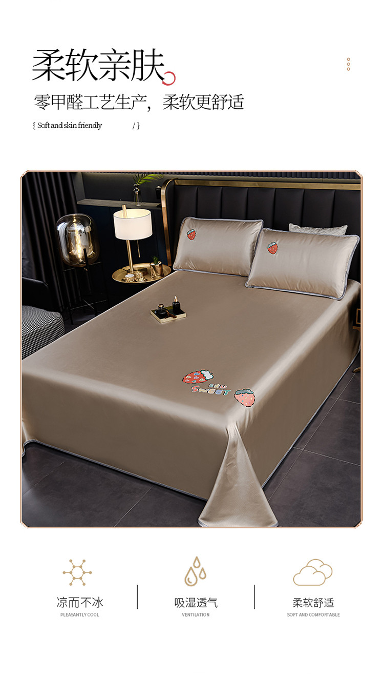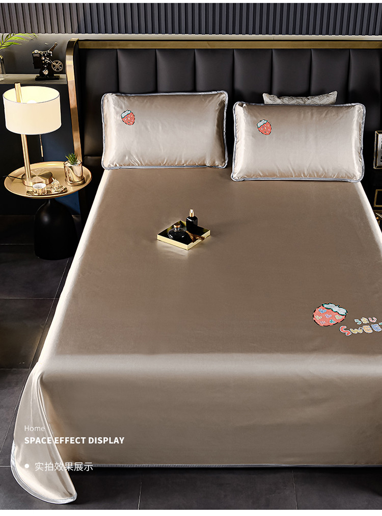 芃成家纺 2021新款冰丝凉席刺绣床单款 草莓咖色