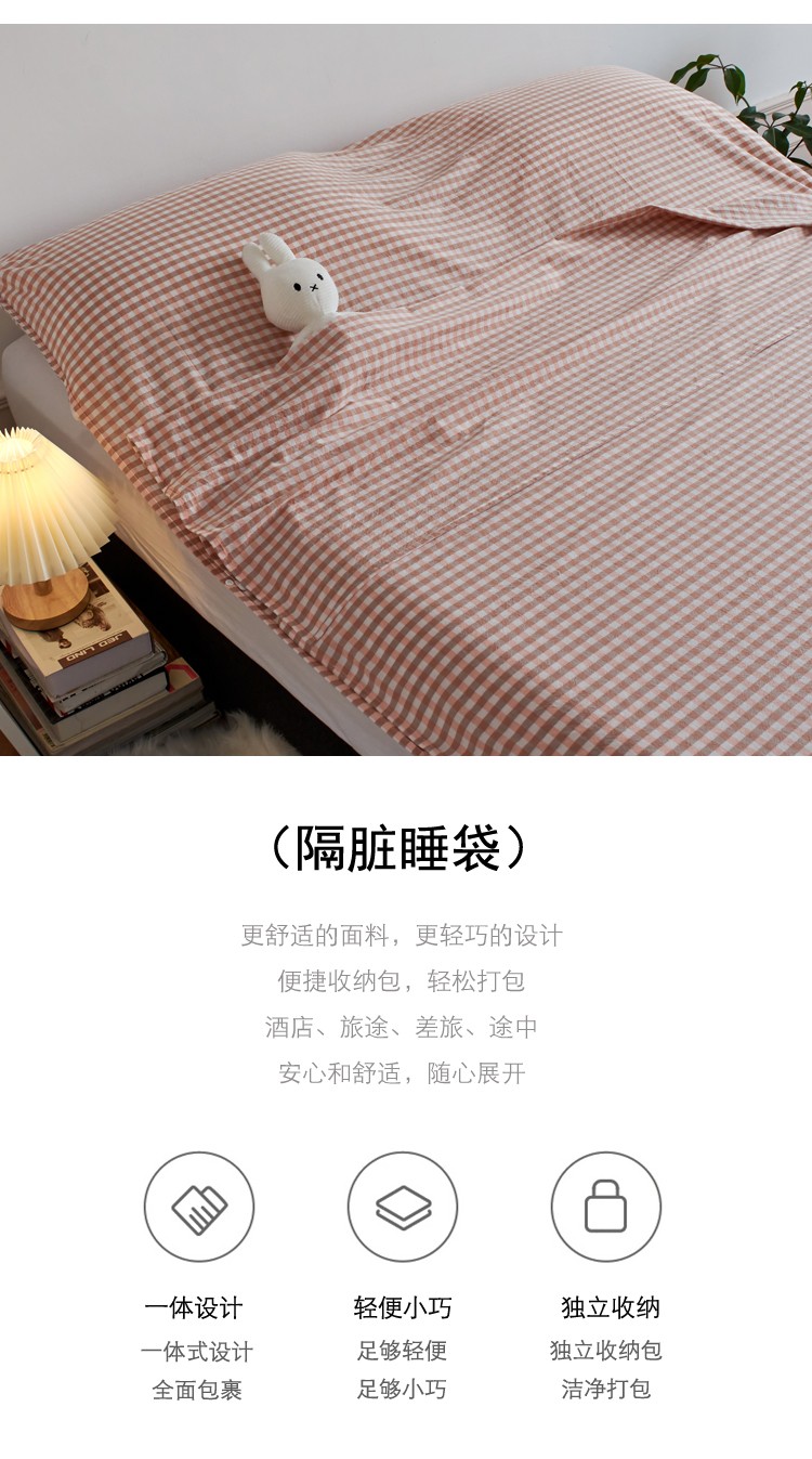 无印色织全棉水洗棉酒店隔脏睡袋便携式出差旅游行单双人床单被套
