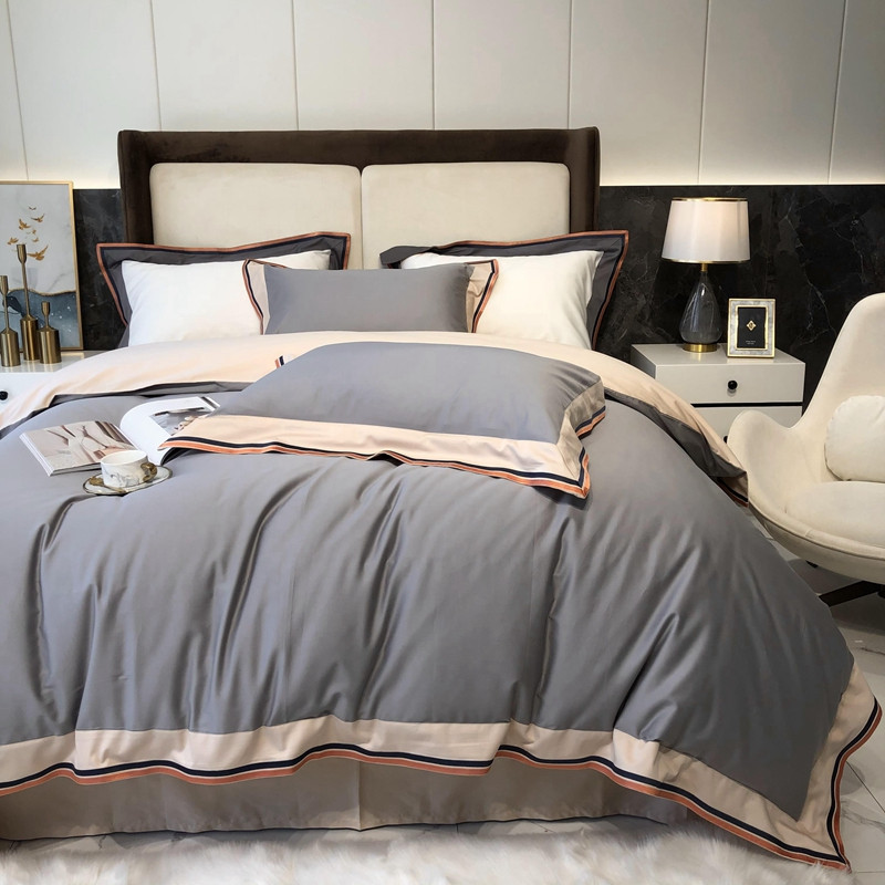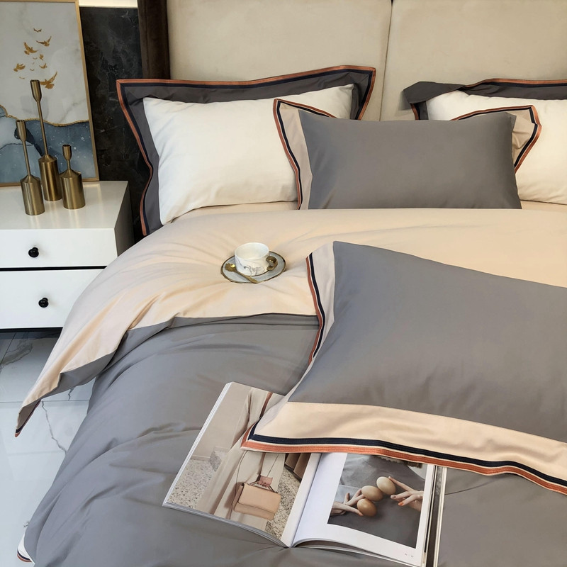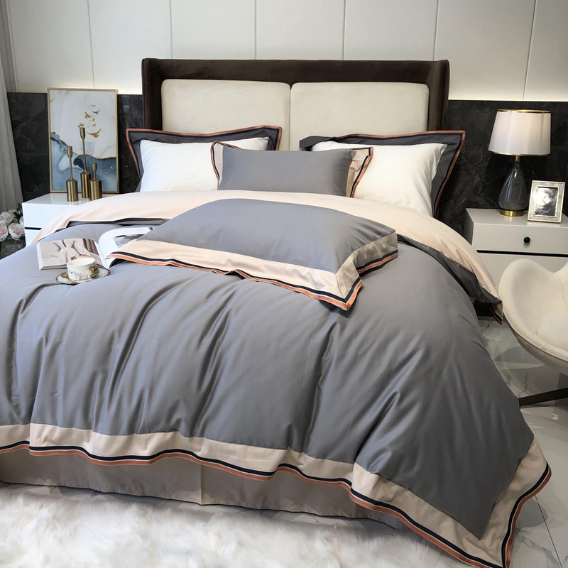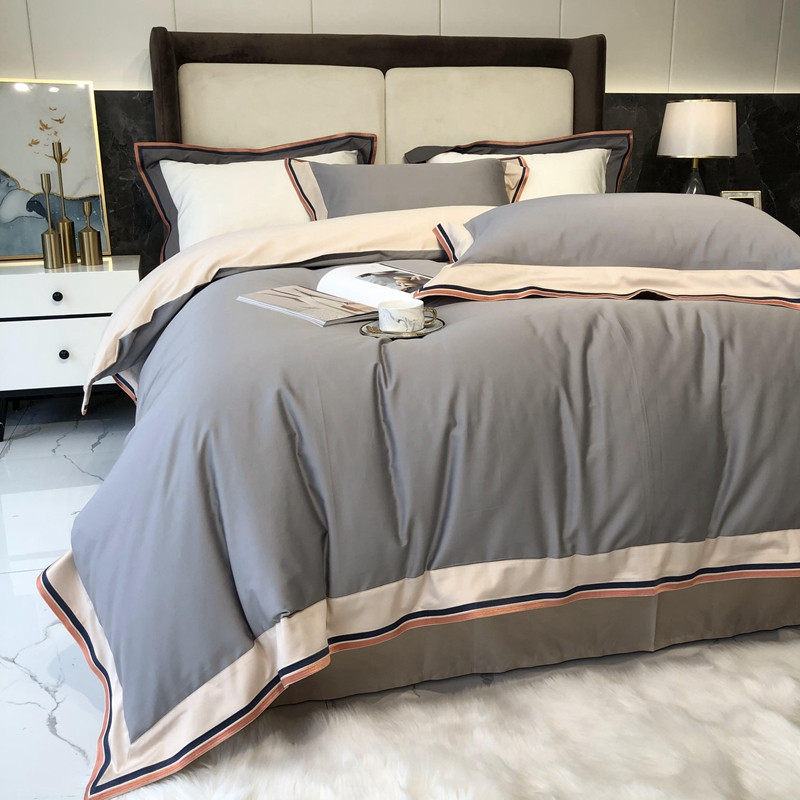 商品名称:太古汇家居 2021新款澳棉双拼绣线邂逅四件套 金典灰