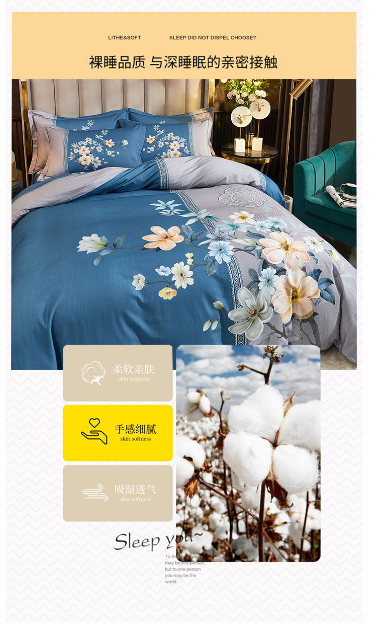 (总)雲归梦 2021新款全棉生态磨毛刺绣四件套,慕思-橙色,慕思-粉紫,慕思-灰,慕思-米黄,慕思-青绿,慕思-天蓝