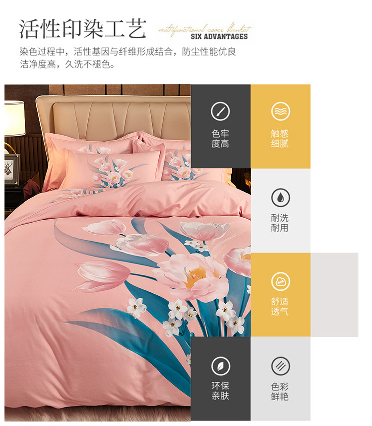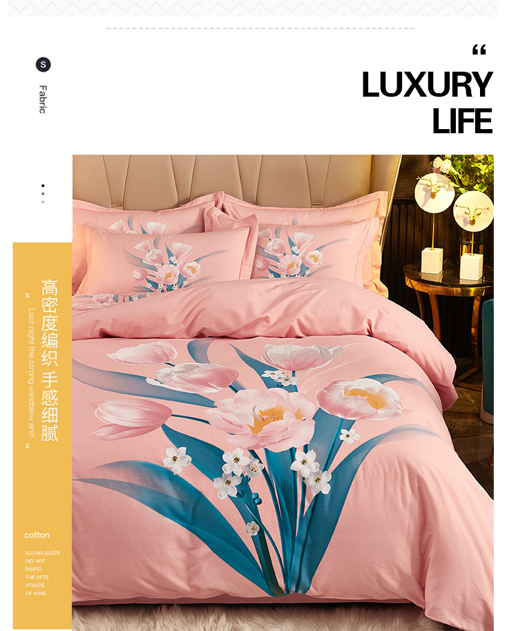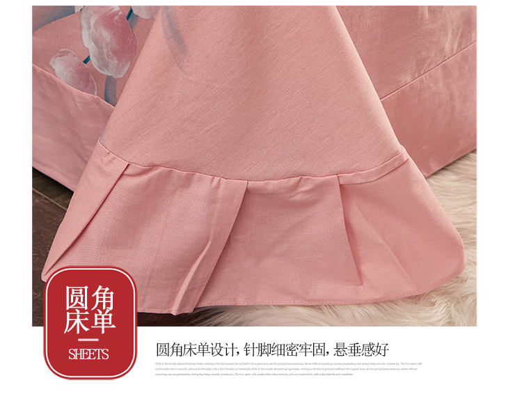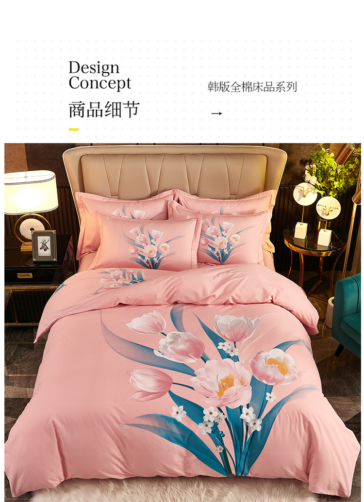 商品名称:雲归梦2021全棉大版生态磨毛四件套花卉花型第1批 花满枝粉