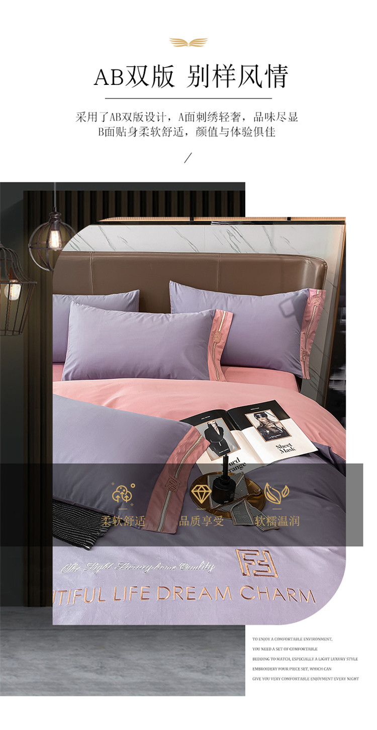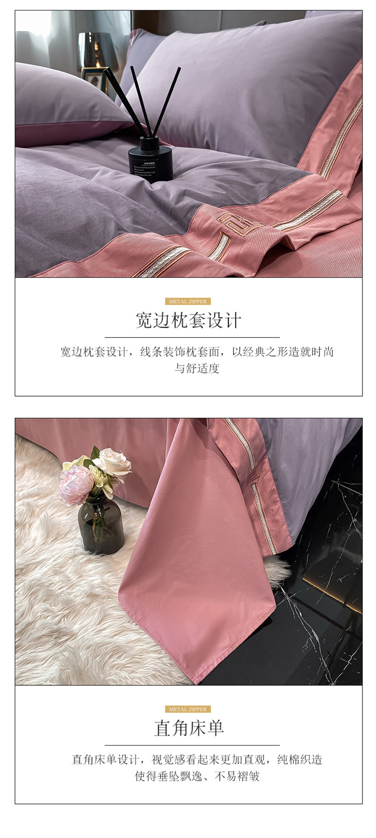(总)拼社家纺活性纯色纯棉刺绣全棉磨毛四件套-逸系列,丹砂紫,帝王灰,豆沙粉,翡翠绿,海星蓝,宝石红,千黛紫,松石绿,香槟黄,玉颜粉,至尊灰