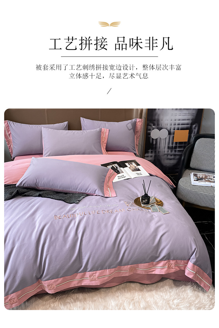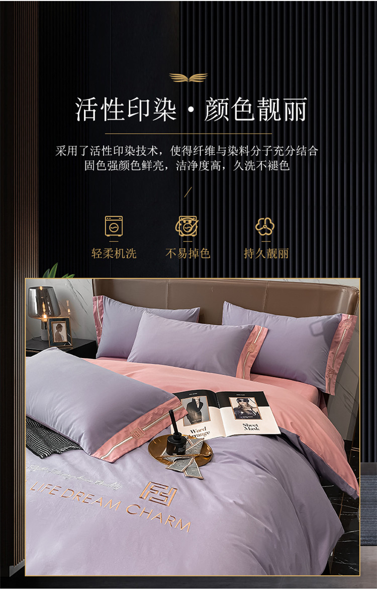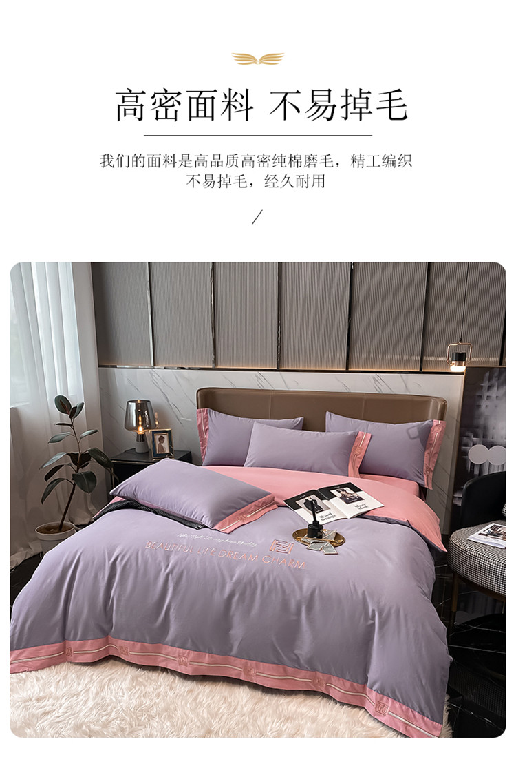 商品名称:拼社活性纯色纯棉刺绣全棉磨毛四件套-梵系列(全棉加厚)月光紫