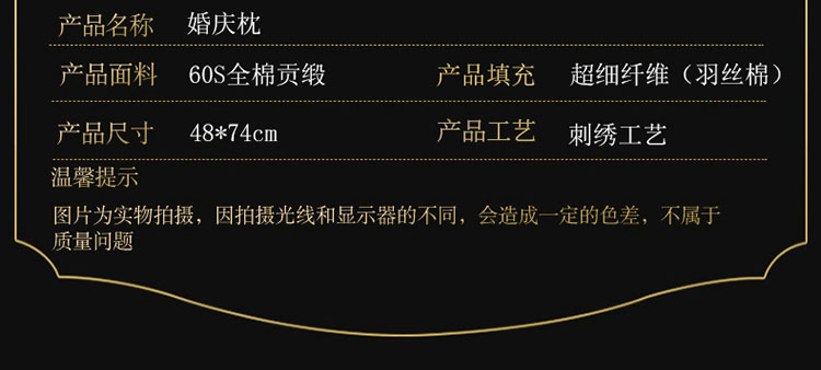 商品名称:(总)枕之坊 2021新款大红婚庆羽丝枕b48×74cm