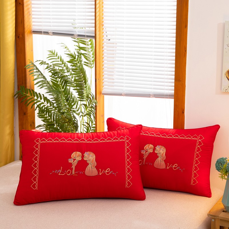 (总)枕之坊 2021新款大红婚庆羽丝枕b48×74cm