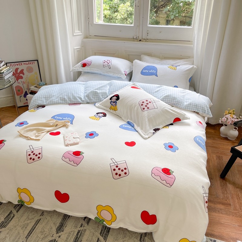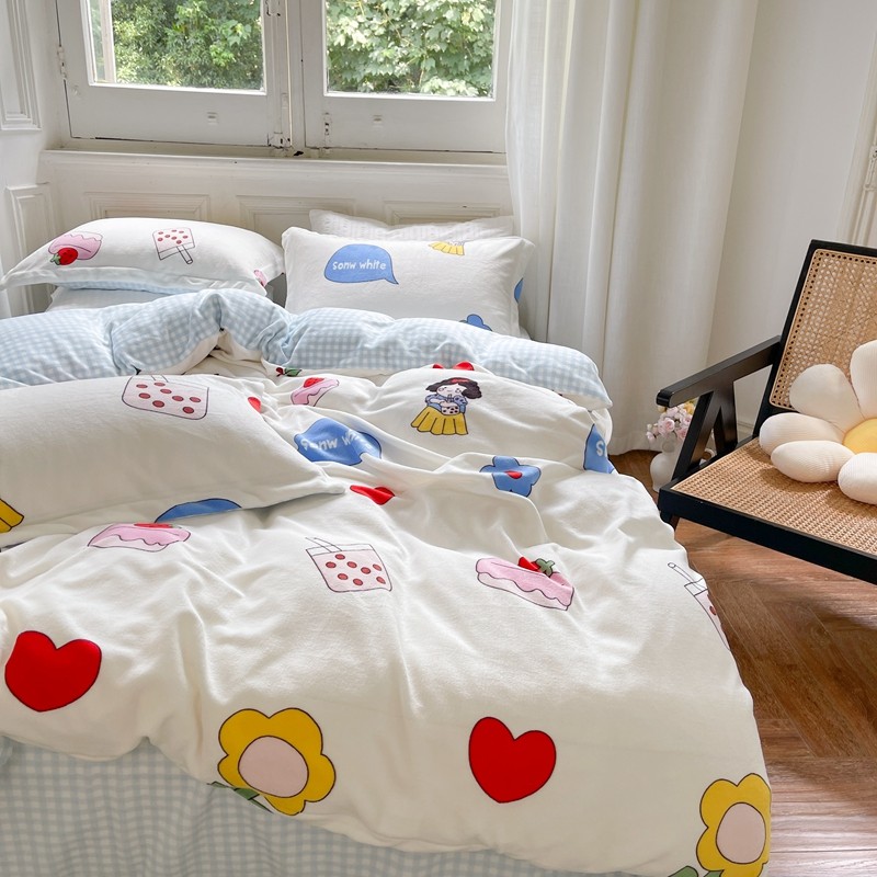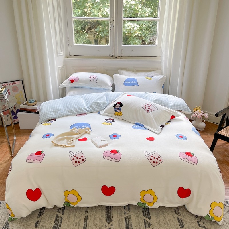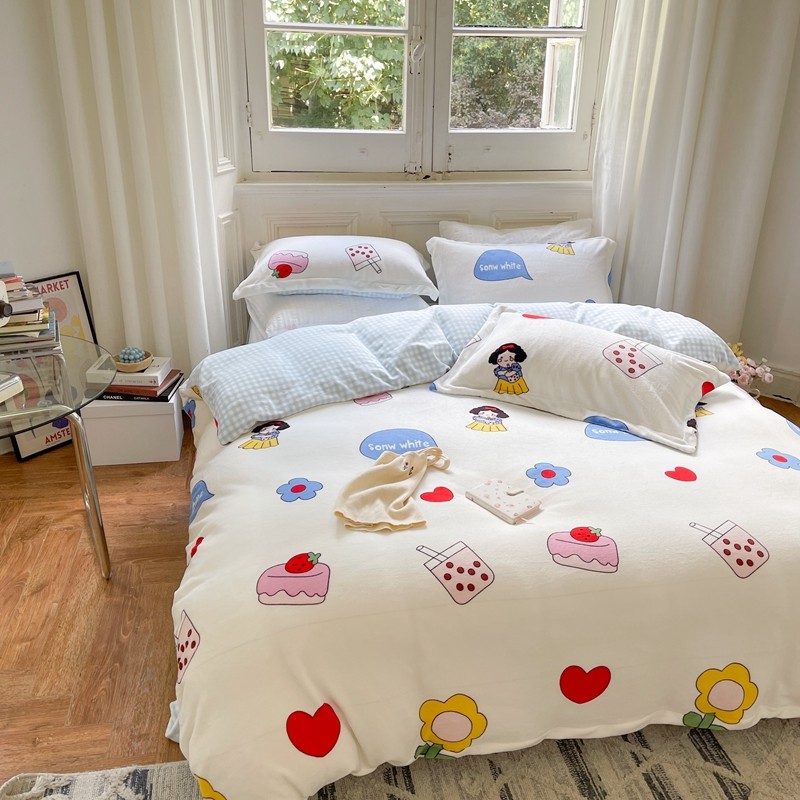 商品名称:柚子 2021新款牛奶绒印花四件套 公主白