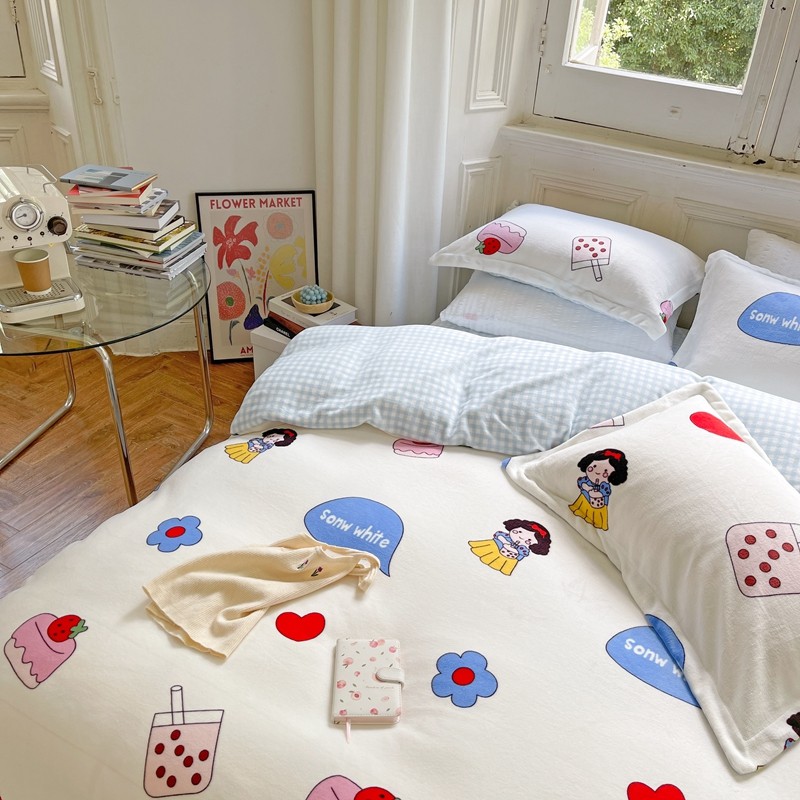 (总)柚子YOUTH 2025新款加厚牛奶绒卡通毛巾绣四件套-印加绣送同款毛毯,蛋糕小狗,公主猫,头套猫,兔兔花园,小伙伴,雪纳瑞