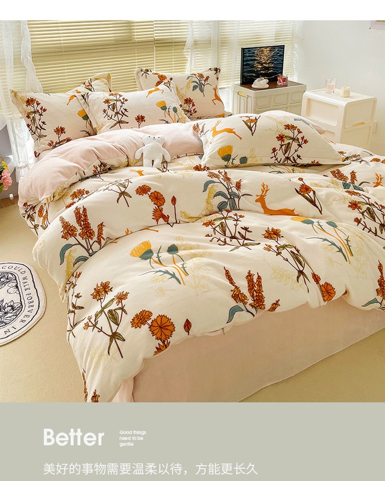 商品名称:慕尚 2022新款田园花卉类牛奶绒单被套 美好时光
