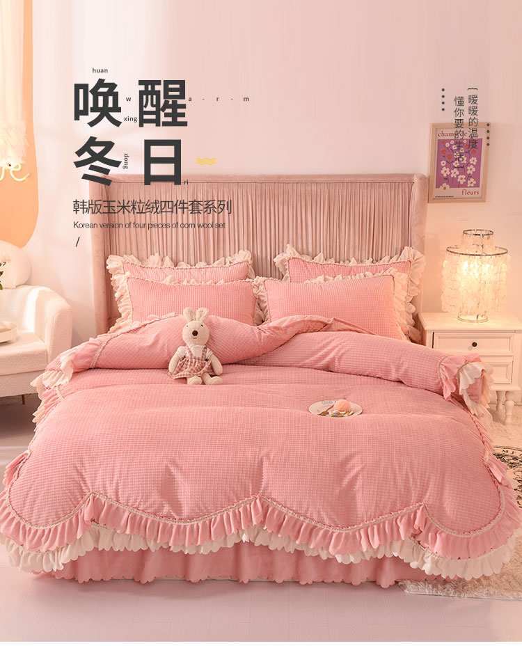 芭比蔓 2024新款韩版玉米粒绒四件套系列 玉米粒-珊瑚玉