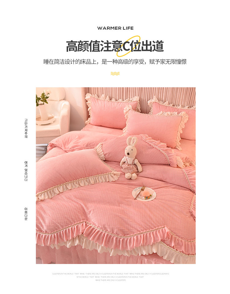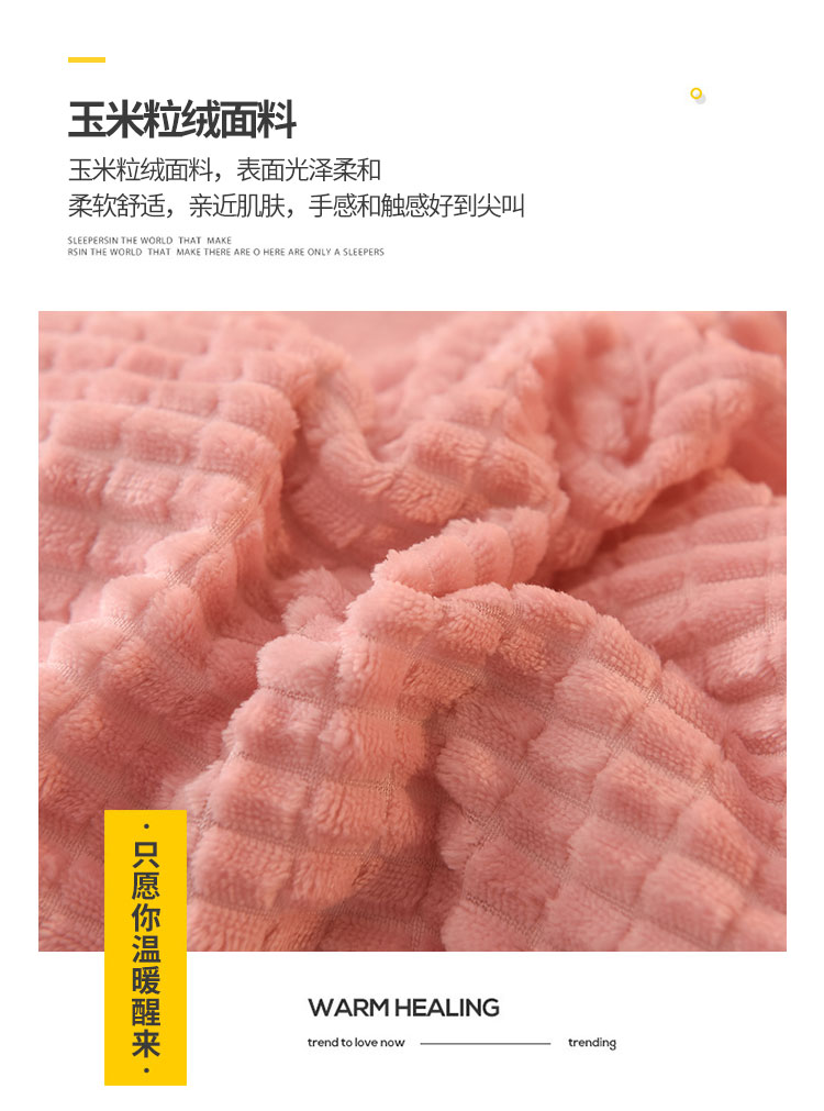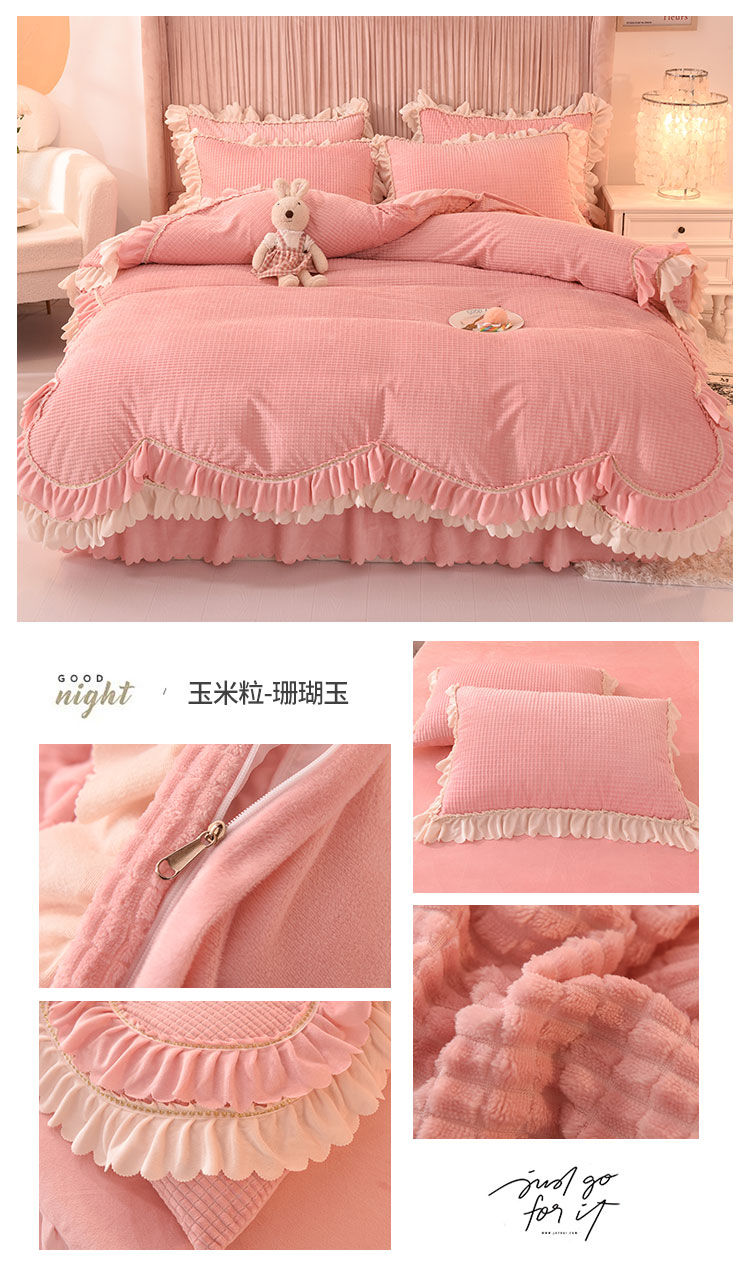 商品名称:芭比蔓 2024新款韩版玉米粒绒四件套系列 玉米粒-珊瑚玉