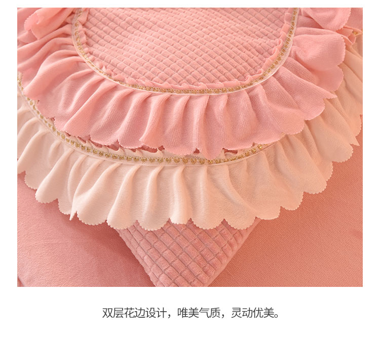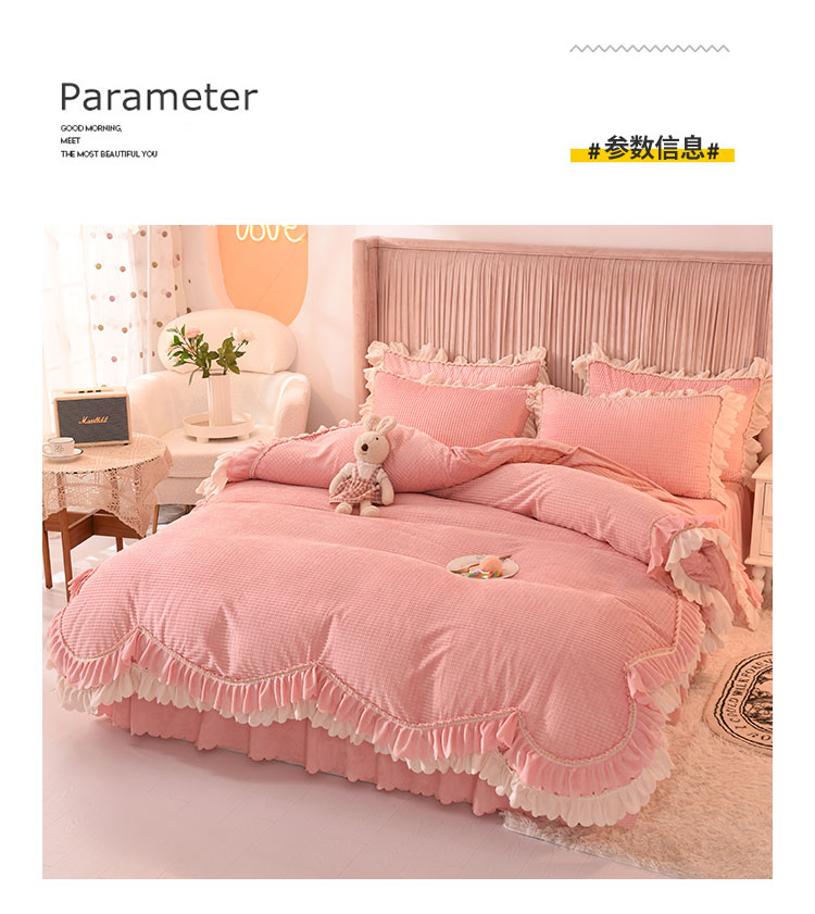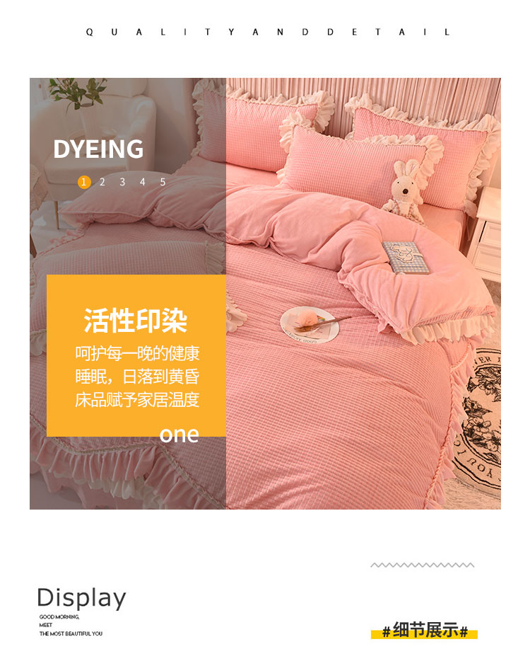 (总)芭比蔓 2024新款直播供货韩版花边款牛奶绒四件套,爱玛橙,宝石红,湖蓝,倾国粉,秋月黄,深灰,珍珠白,竹青绿