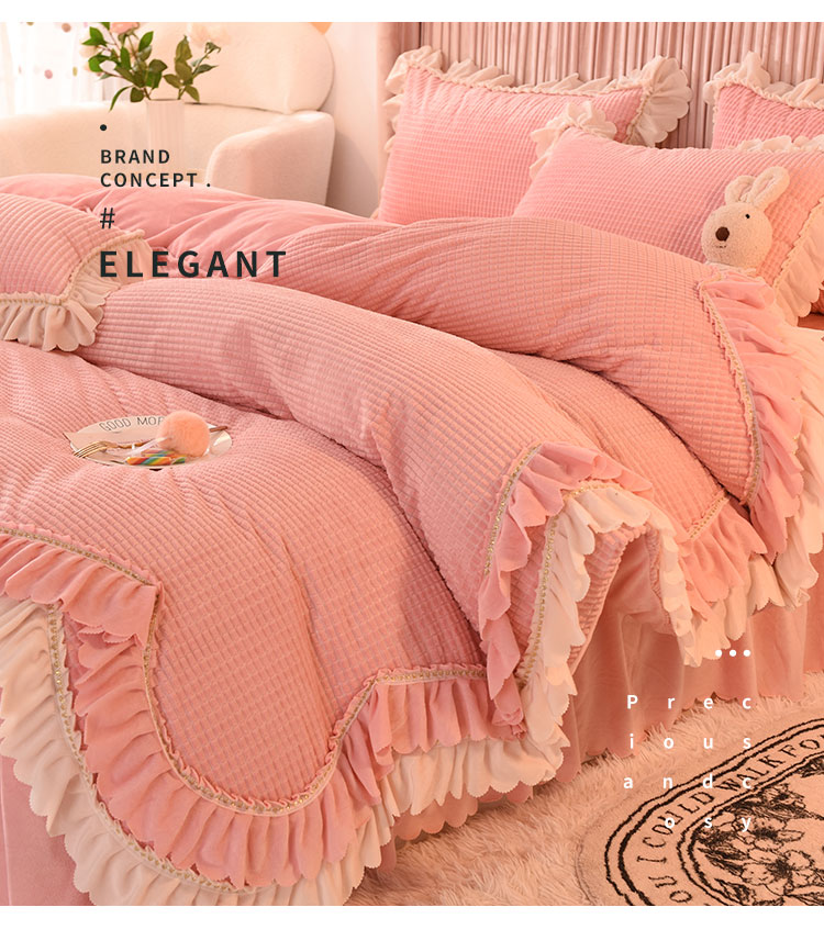 芭比蔓家纺 2025年新款雕花牛奶绒花边四件套-爱丽丝 爱丽丝-粉,爱丽丝-粉
